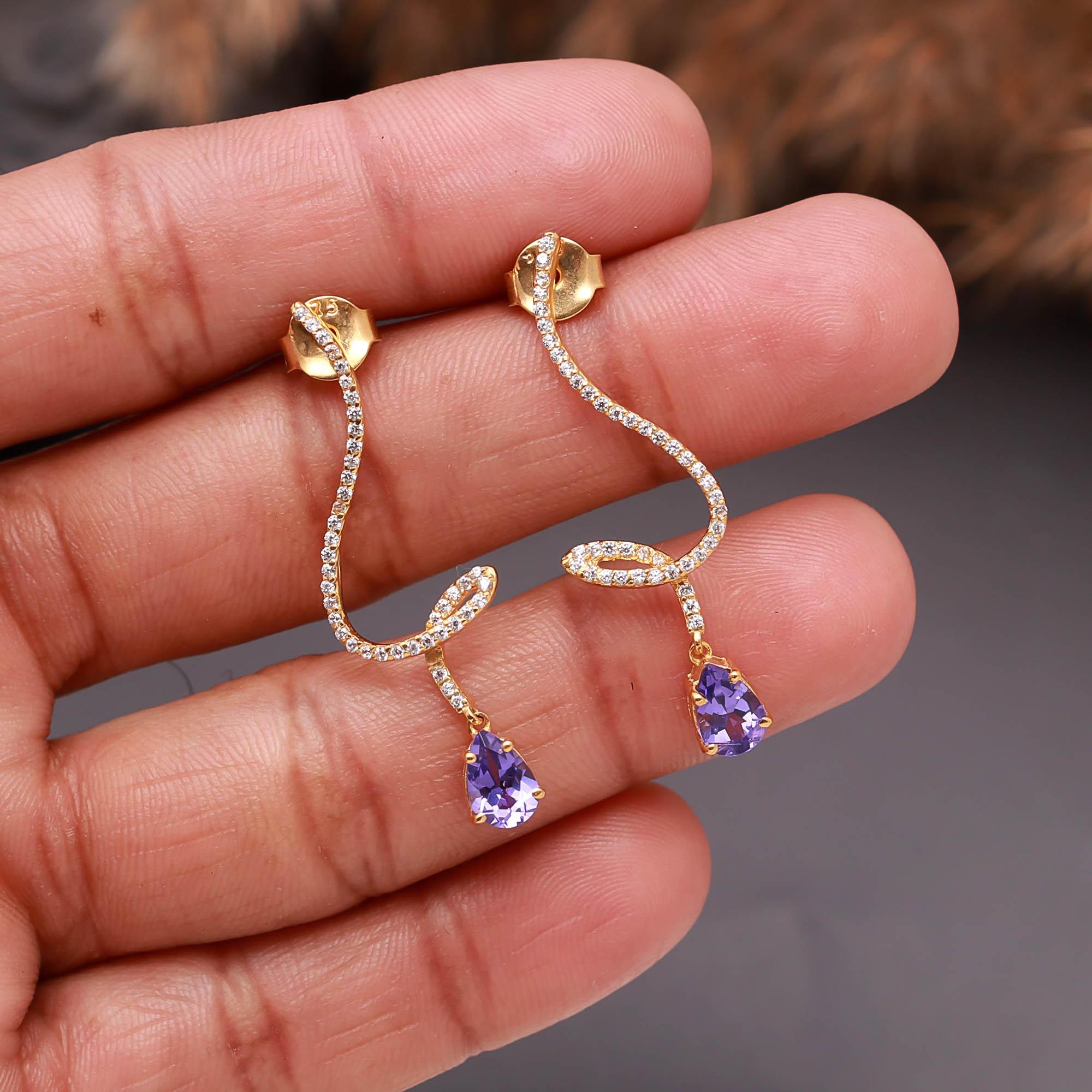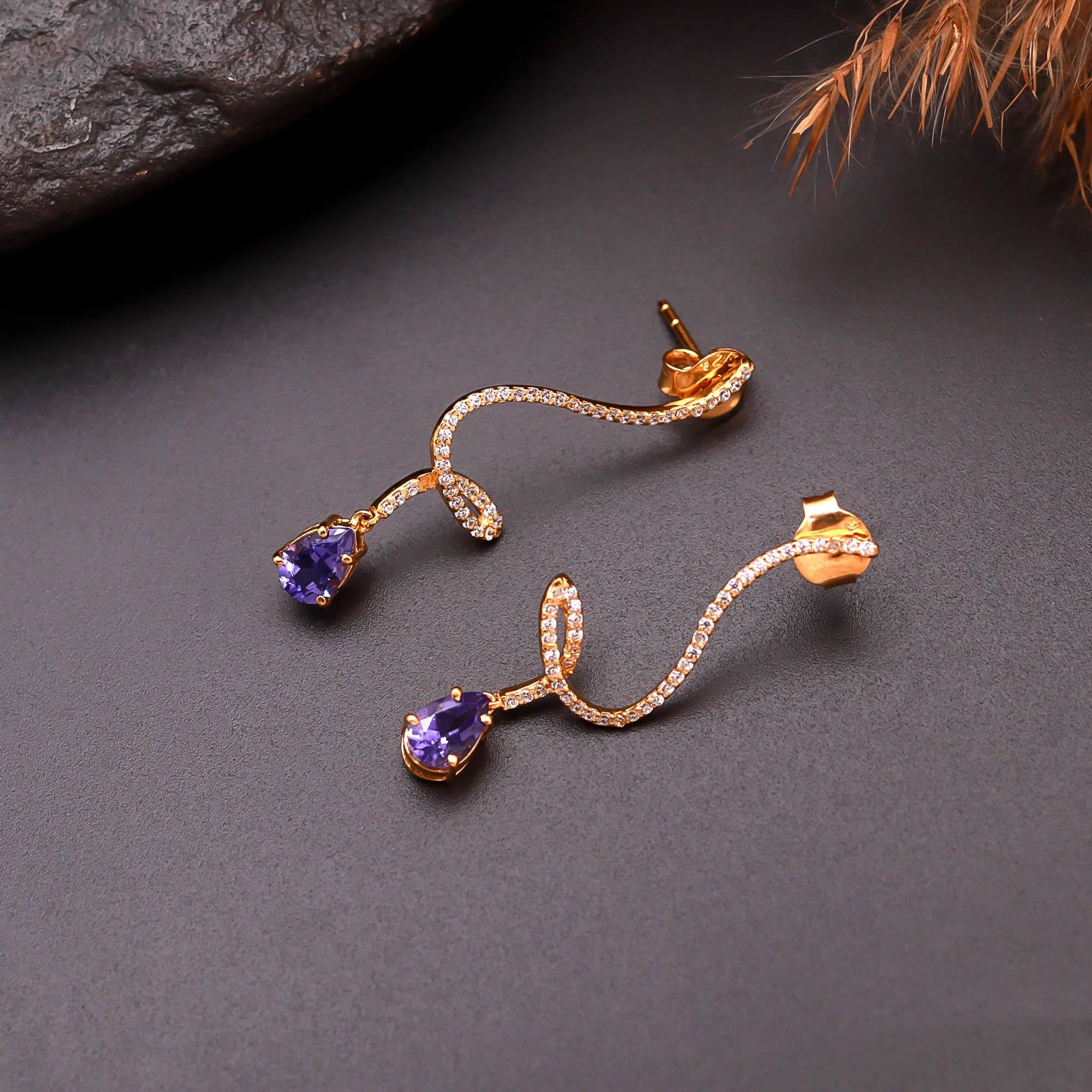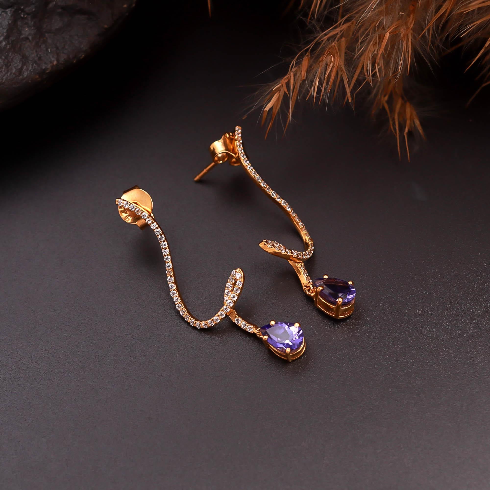 Elegant Gold-Plated Tanzanite Drop Earrings – Silverhub Jewelry India