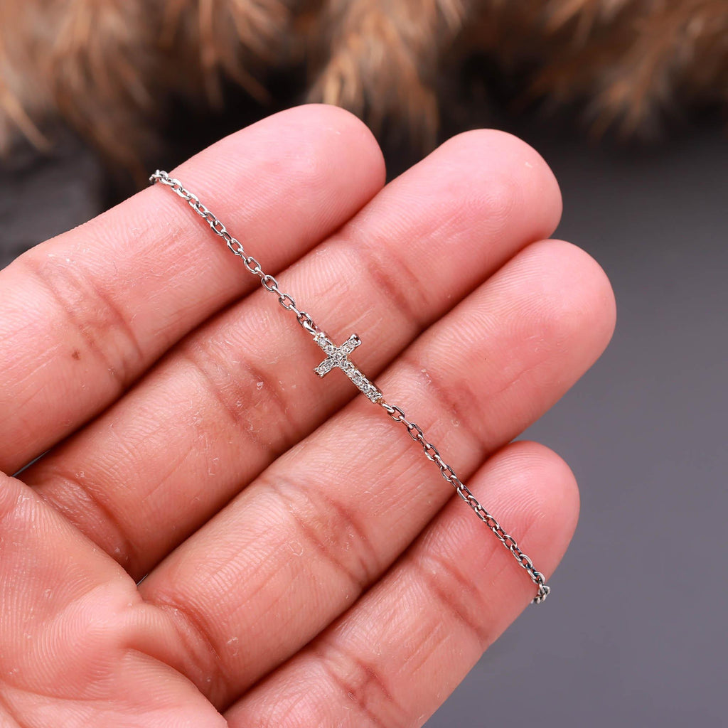 This Delicate Cross Pendant Bracelet embodies simplicity and faith with timeless elegance. Crafted from high-quality silver, it features a finely detailed cross pendant that adds a subtle yet meaningful touch. The sleek and lightweight design makes it comfortable for everyday wear, while the polished finish ensures a radiant shine. Perfect for both casual and formal occasions, this bracelet serves as a beautiful symbol of hope, faith, and grace.