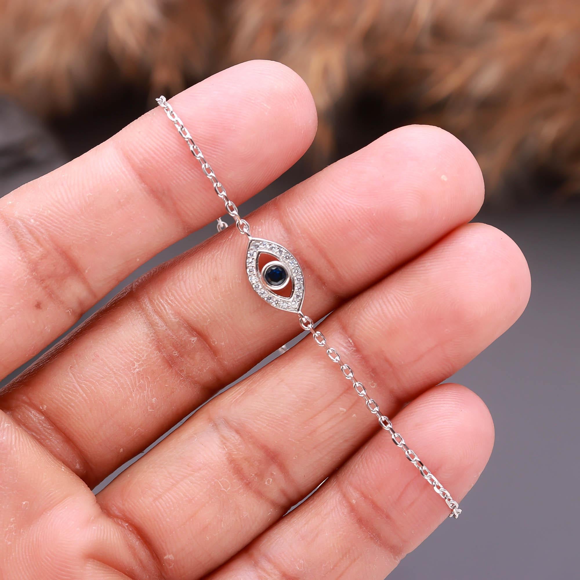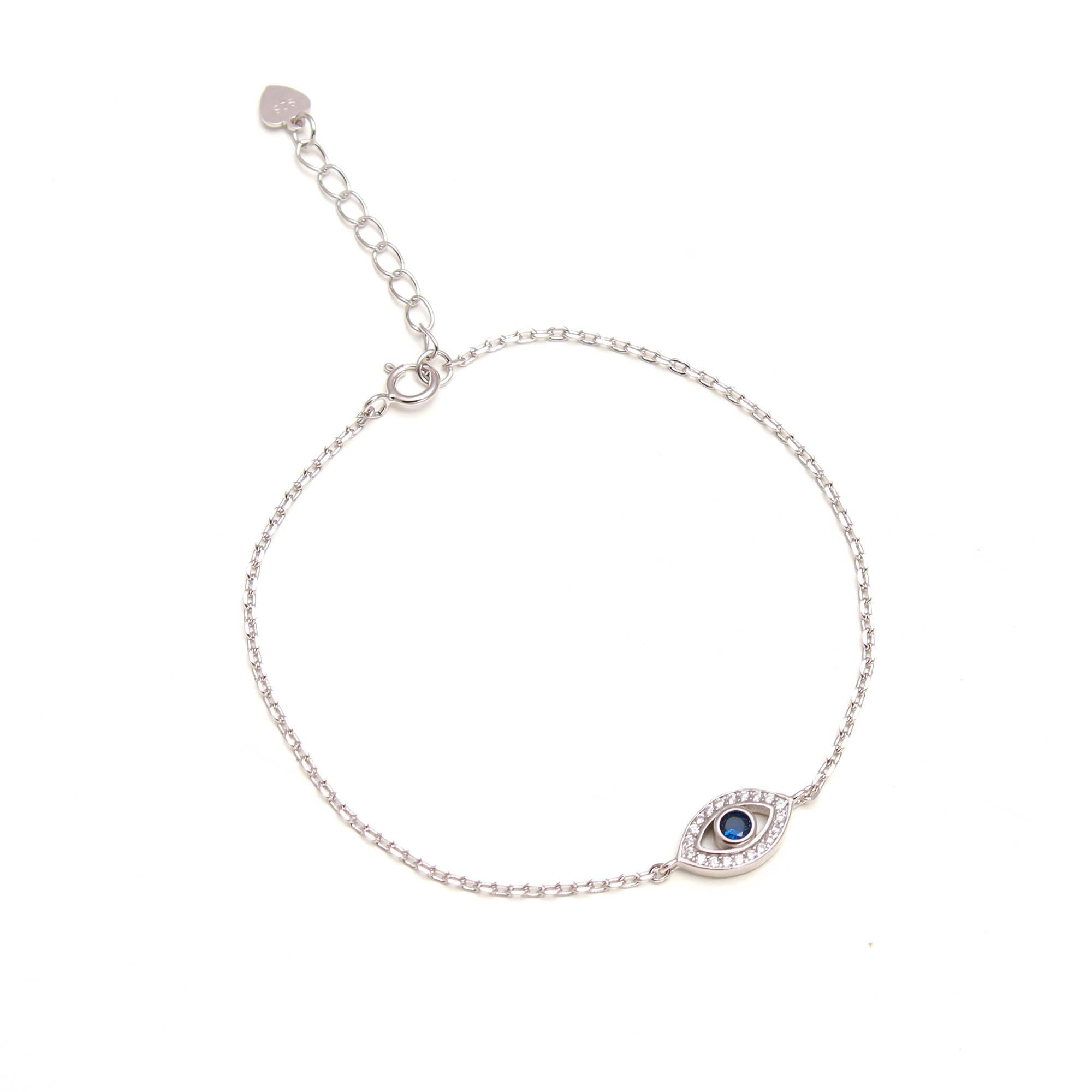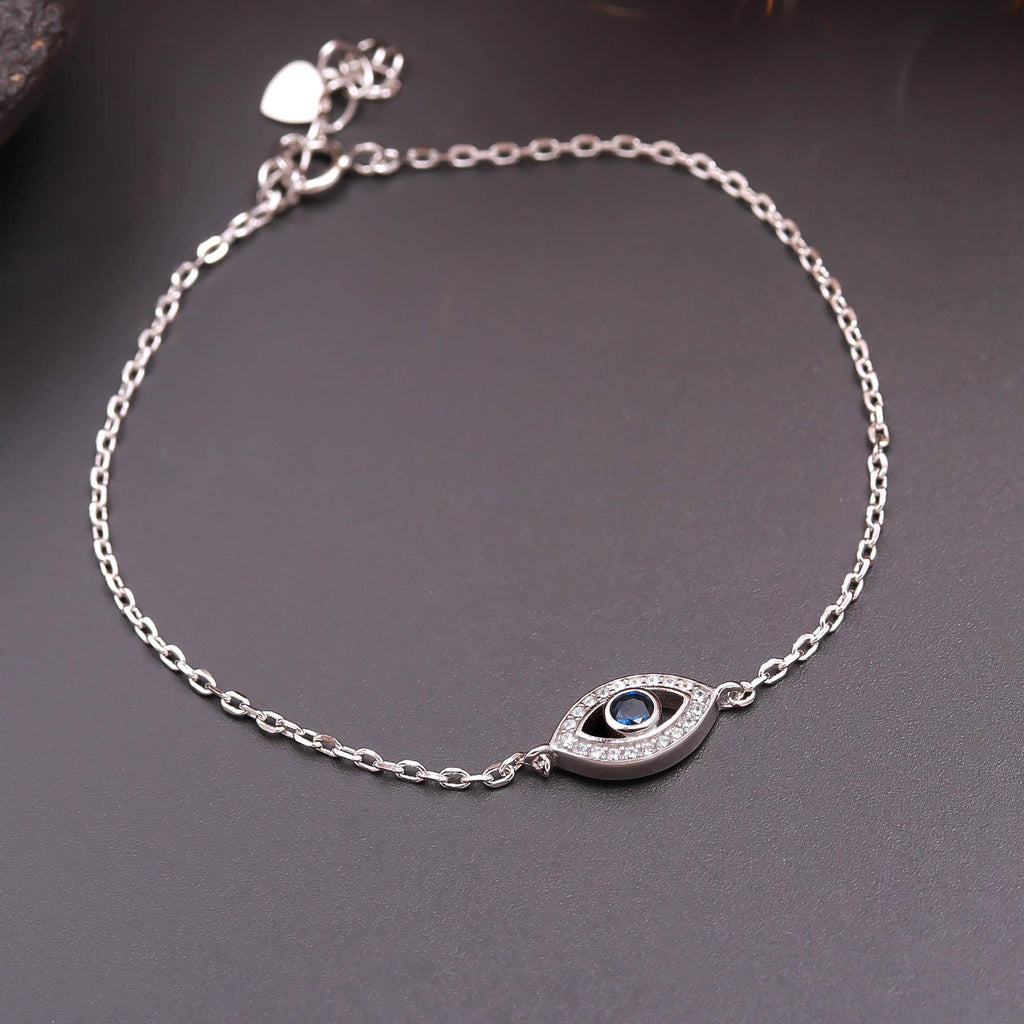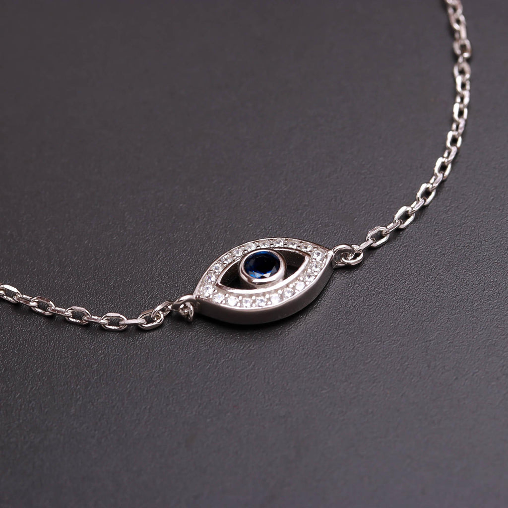 This Evil Eye Bracelet combines style and symbolism beautifully. Crafted from high-quality silver, it features a striking eye-shaped charm with a deep blue center encircled by sparkling white stones. The design is not only elegant but also believed to offer protection and positive energy. Lightweight and comfortable, this bracelet is perfect for everyday wear or as a meaningful gift that adds a touch of charm and grace to any outfit.