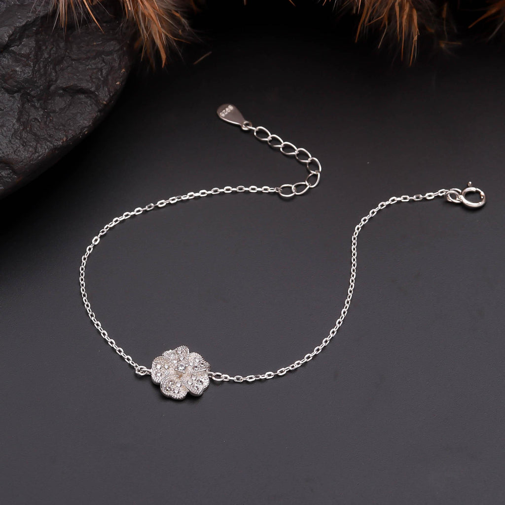 This Floral Design Bracelet showcases timeless beauty and delicate craftsmanship. Made from high-quality silver, it features intricately designed floral motifs that exude elegance and femininity. The polished finish enhances its shine, making it a perfect accessory for both everyday wear and special occasions. Lightweight yet durable, this bracelet adds a graceful touch to any outfit — a true symbol of natural charm and sophistication.