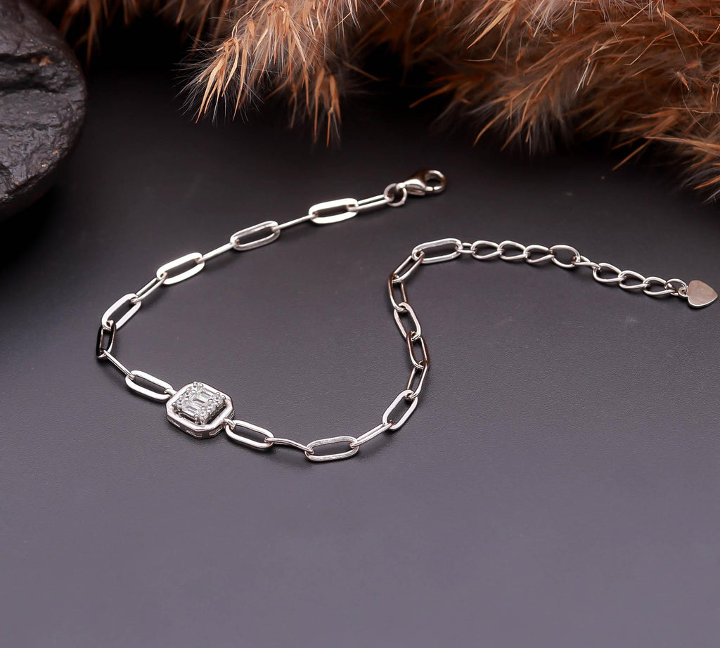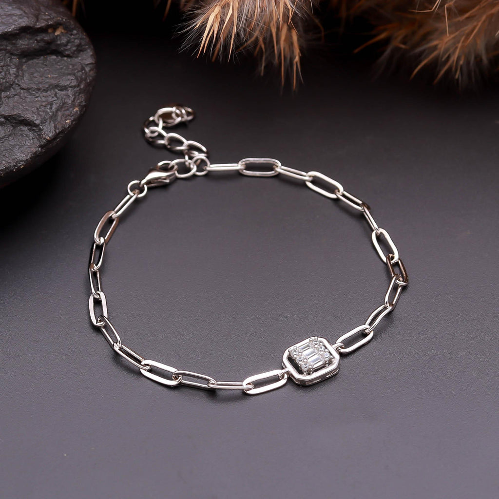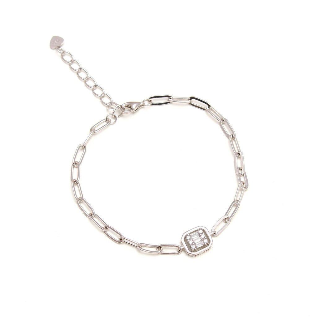 This Silver Bracelet with Decorative Element showcases a sleek and refined design, perfect for adding a touch of sophistication to any look. Crafted from high-quality silver, it features a subtle decorative centerpiece that enhances its elegant appeal. Lightweight and comfortable, this bracelet is ideal for both everyday wear and special occasions, offering timeless style and versatility.