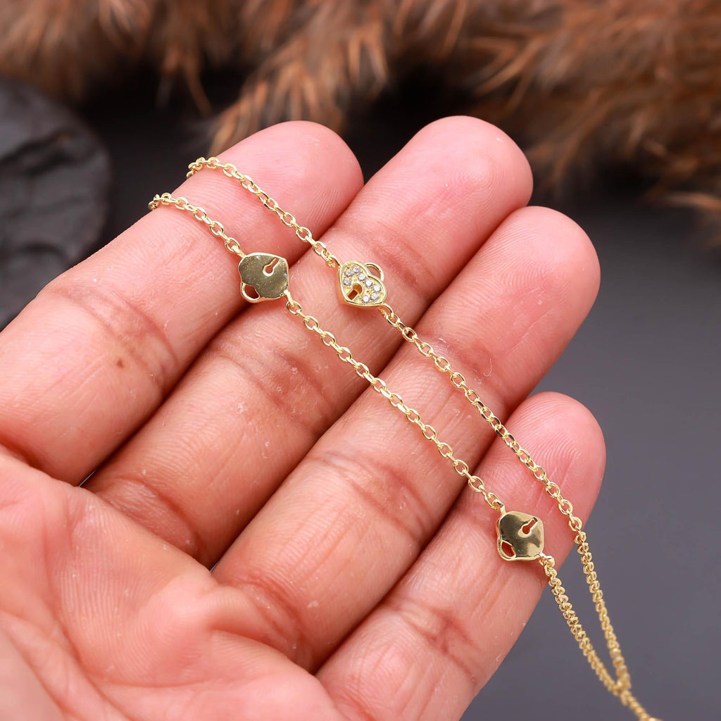 Gold Chain Bracelet with Heart Charms