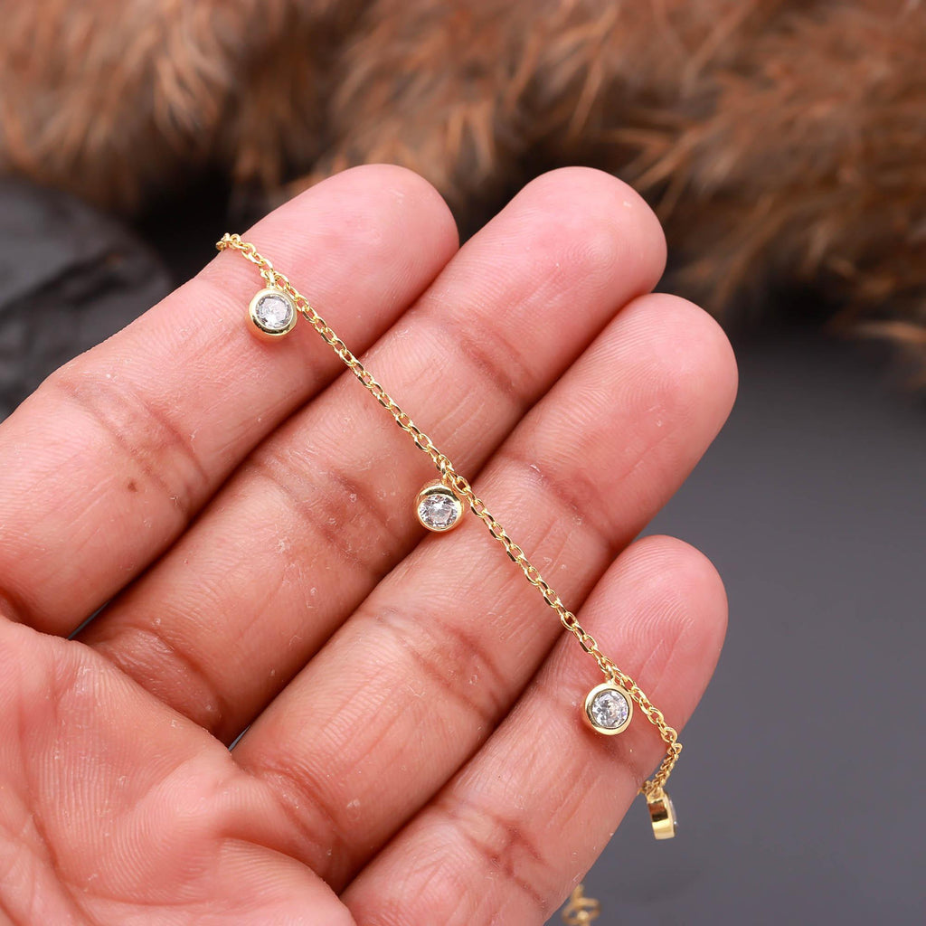 Gold Chain Bracelet with Clear Stones