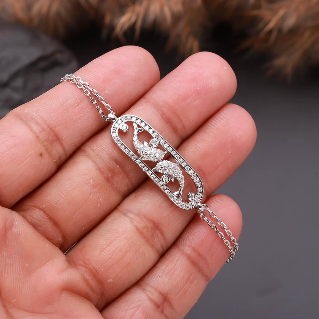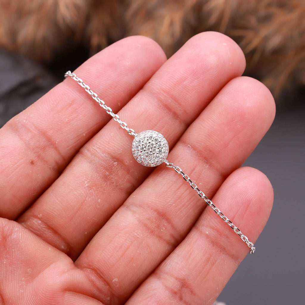 Delicate Silver Bracelet with Round Sparkling Charm