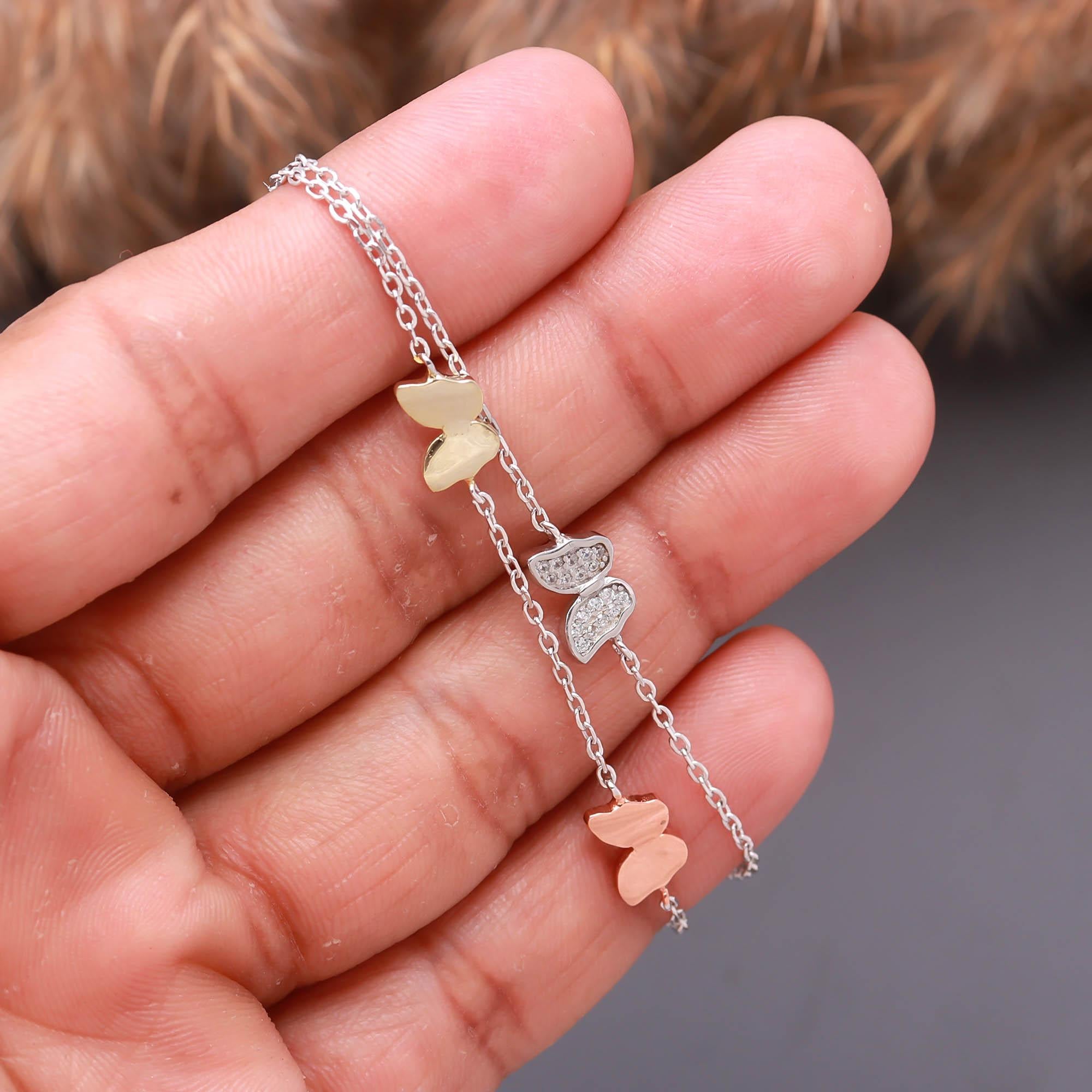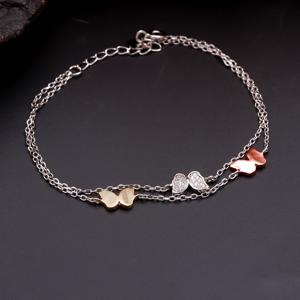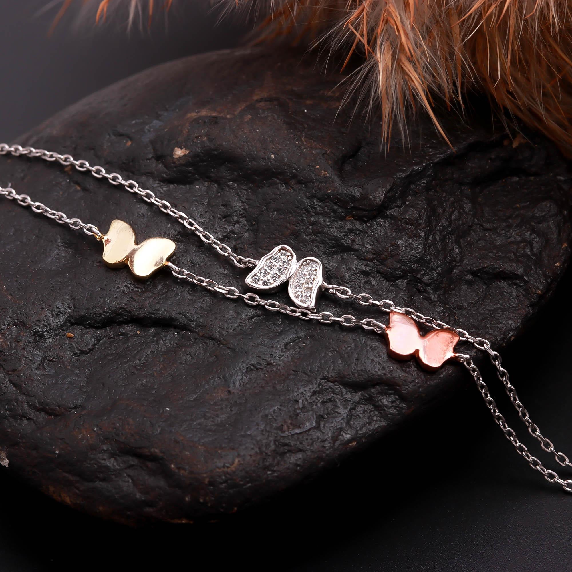 This Butterfly Charm Bracelet is a beautiful celebration of elegance and transformation. Adorned with three delicate butterfly charms in gold, silver, and rose gold tones, it adds a graceful and feminine touch to any outfit. Crafted with precision and polished for a radiant shine, this bracelet is perfect for everyday wear or special occasions. Its multicolor design makes it versatile and stylish — a charming accessory that symbolizes freedom and beauty.