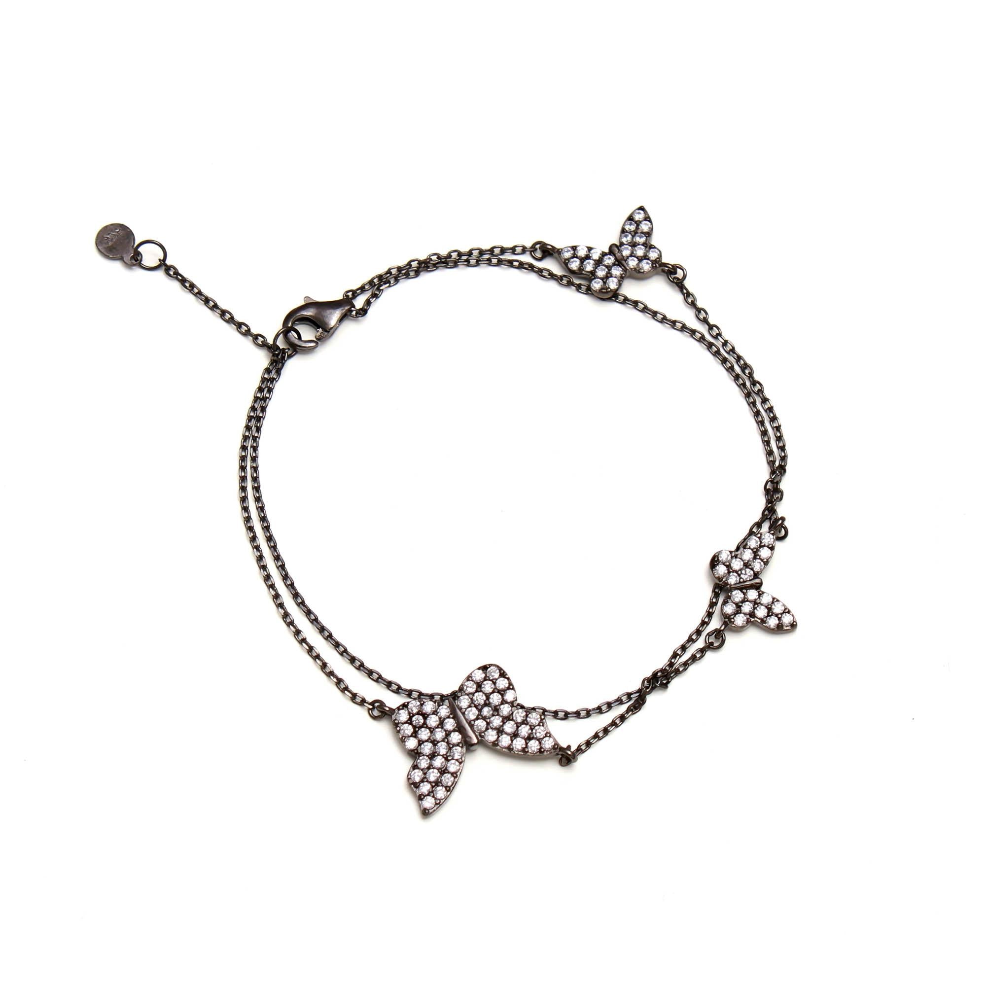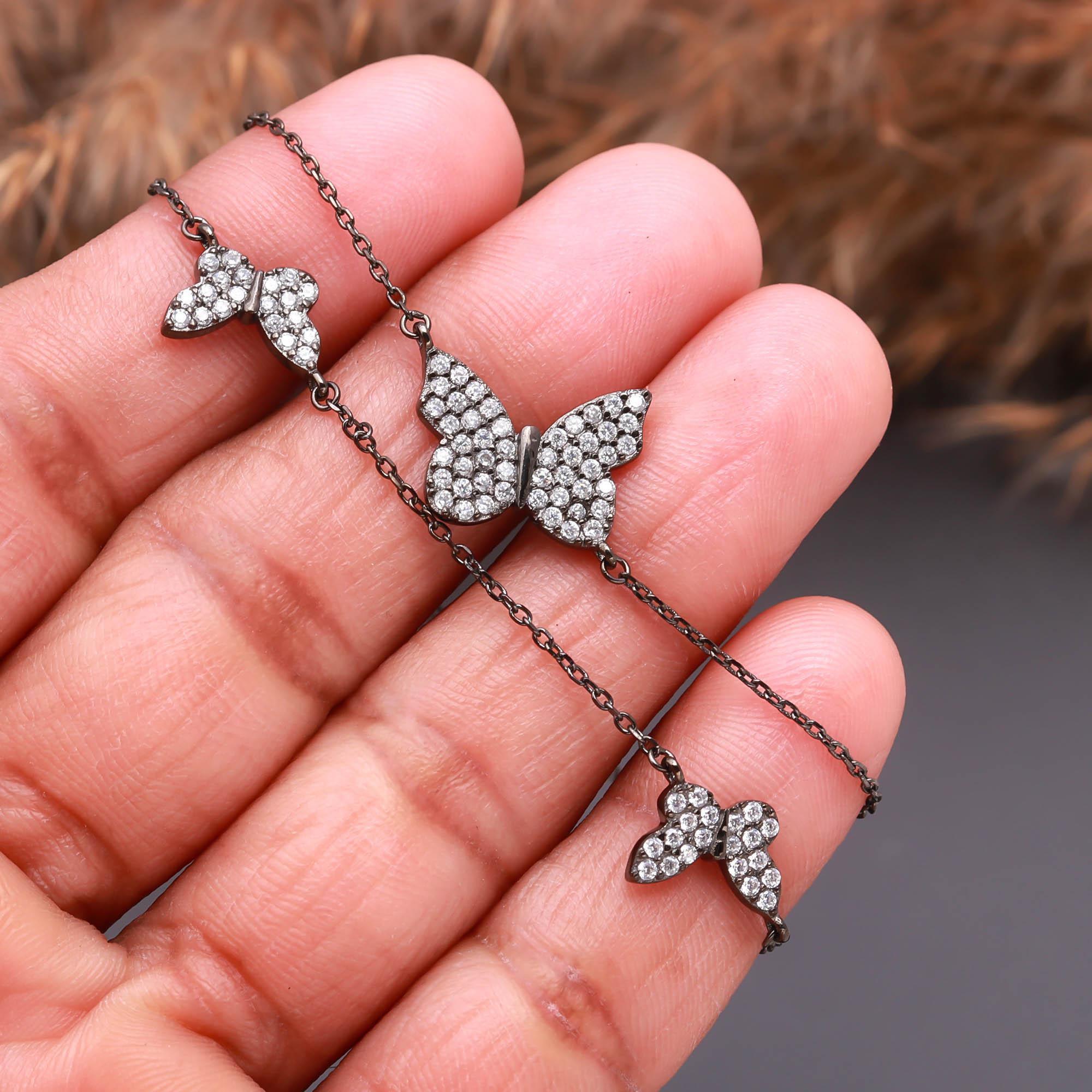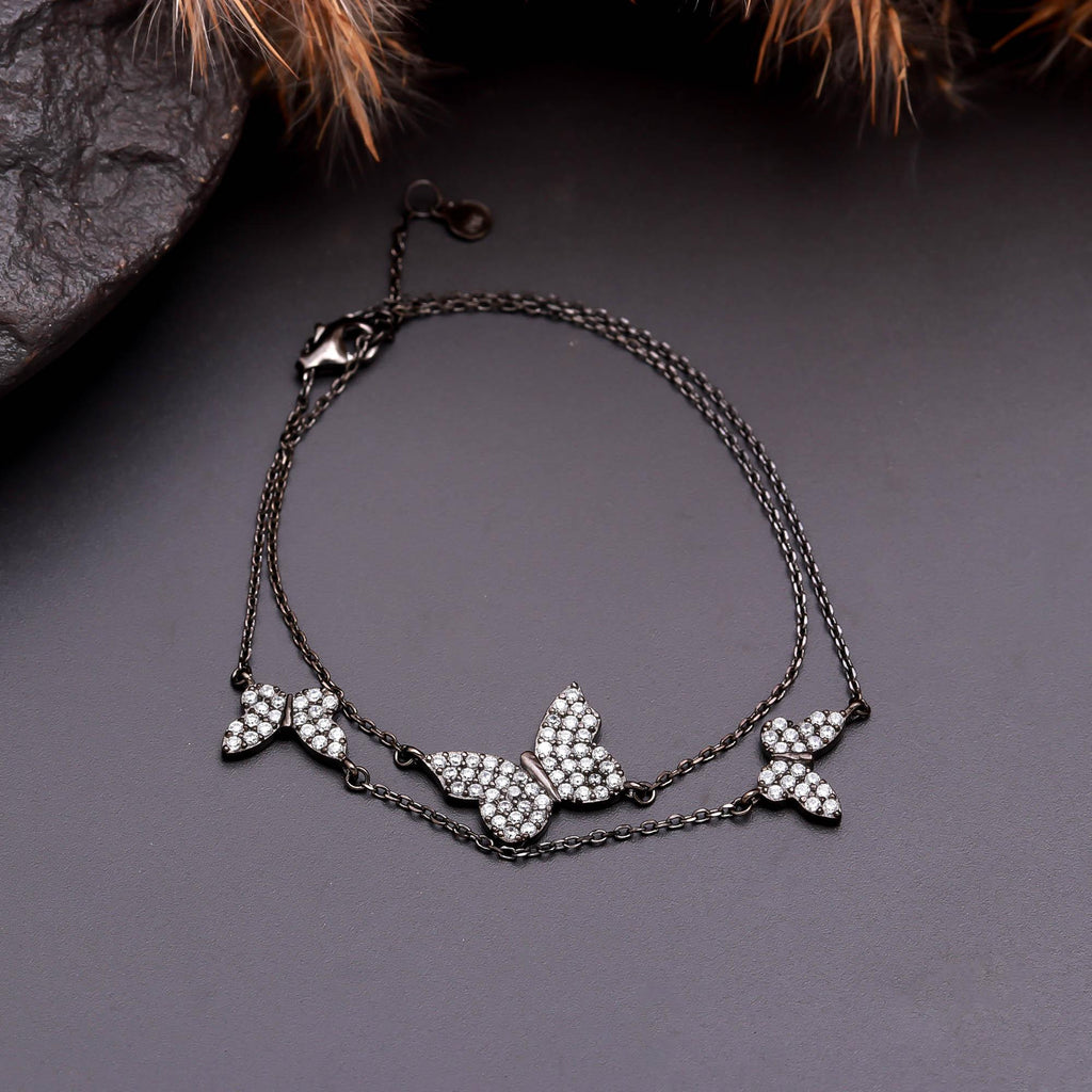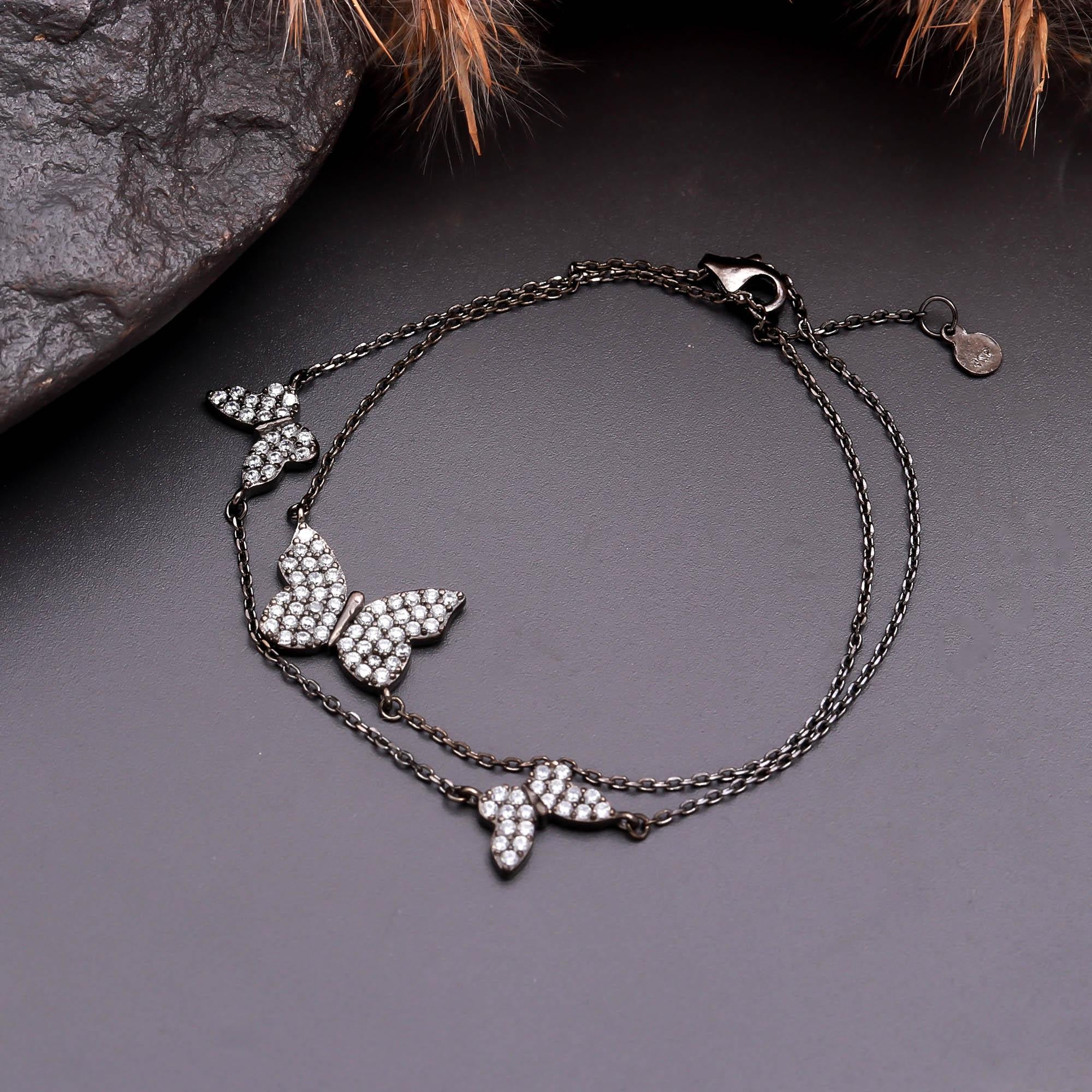 This Butterfly Decor Bracelet exudes a bold yet elegant charm with its dark metallic finish and sparkling butterfly accents. The intricately detailed butterflies, adorned with small clear stones, add a touch of sophistication and shimmer. Its modern, dark-toned design offers a perfect balance of grace and edge, making it an ideal accessory for both casual and evening wear. Stylish and eye-catching, this bracelet beautifully symbolizes transformation and beauty.