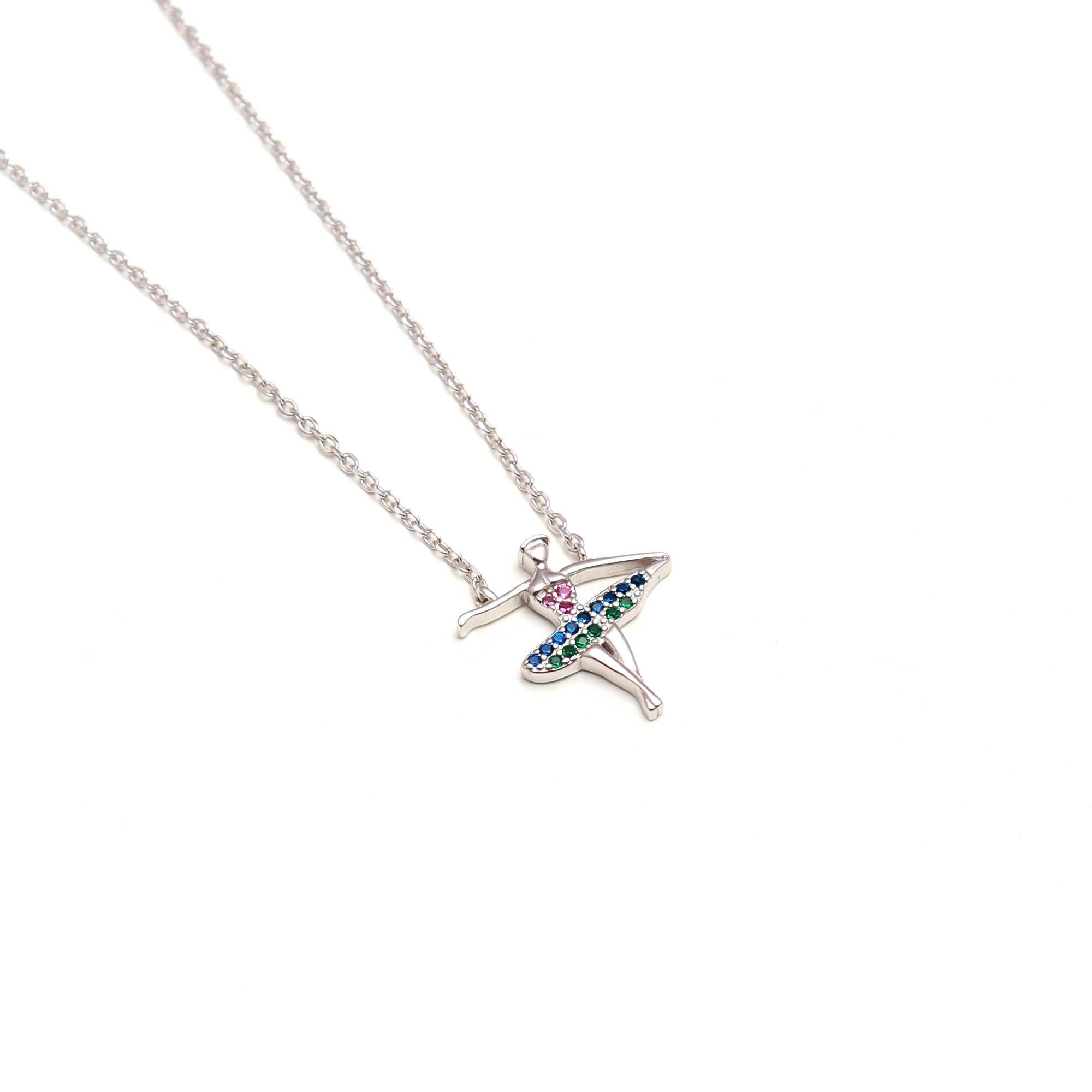 This vibrant necklace features a Rainbow Pendant adorned with pink, green, and blue gemstones, set on a gleaming gold chain. Its color-full design adds a playful yet elegant touch, making it perfect for brightening any outfit. Crafted with attention to detail, it offers both style and lasting quality.