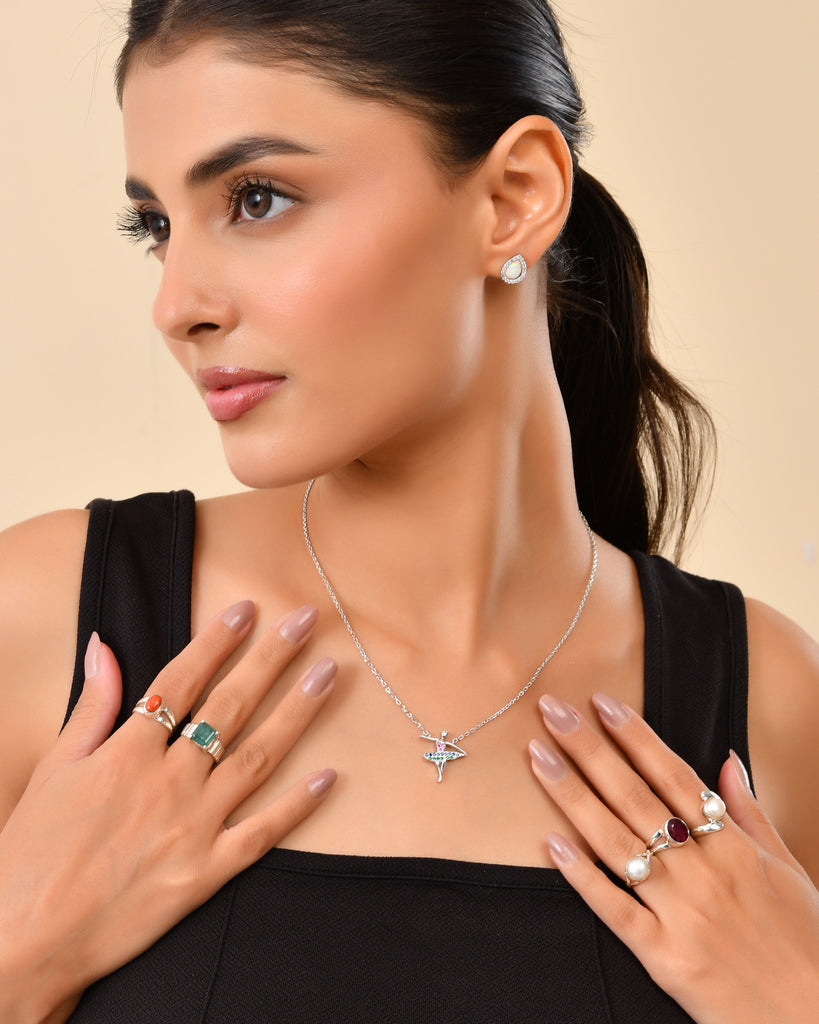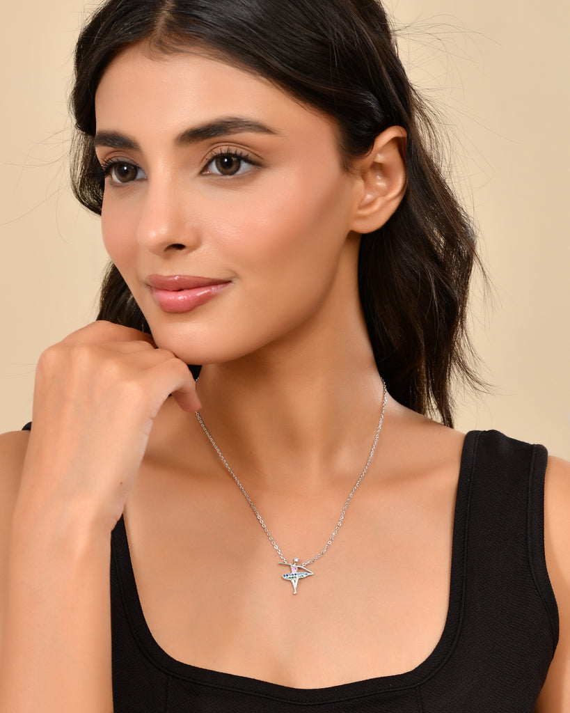 This intricately crafted necklace features a Dancing Lady pendant made from authentic 925 sterling silver, showcasing fine detail and elegant design. The polished finish highlights its artistry, making it a graceful statement piece suitable for both everyday wear and special occasions. Durable and timeless, it reflects expert craftsmanship and refined style.