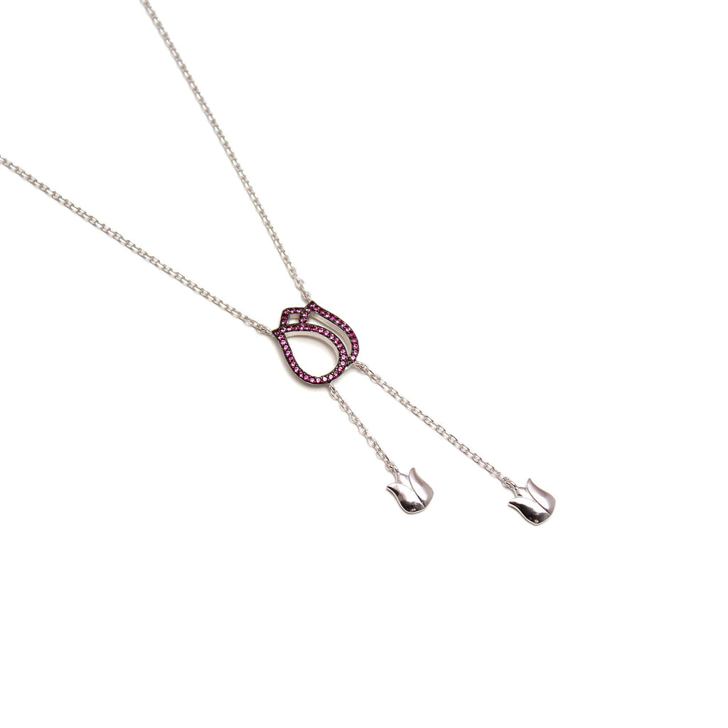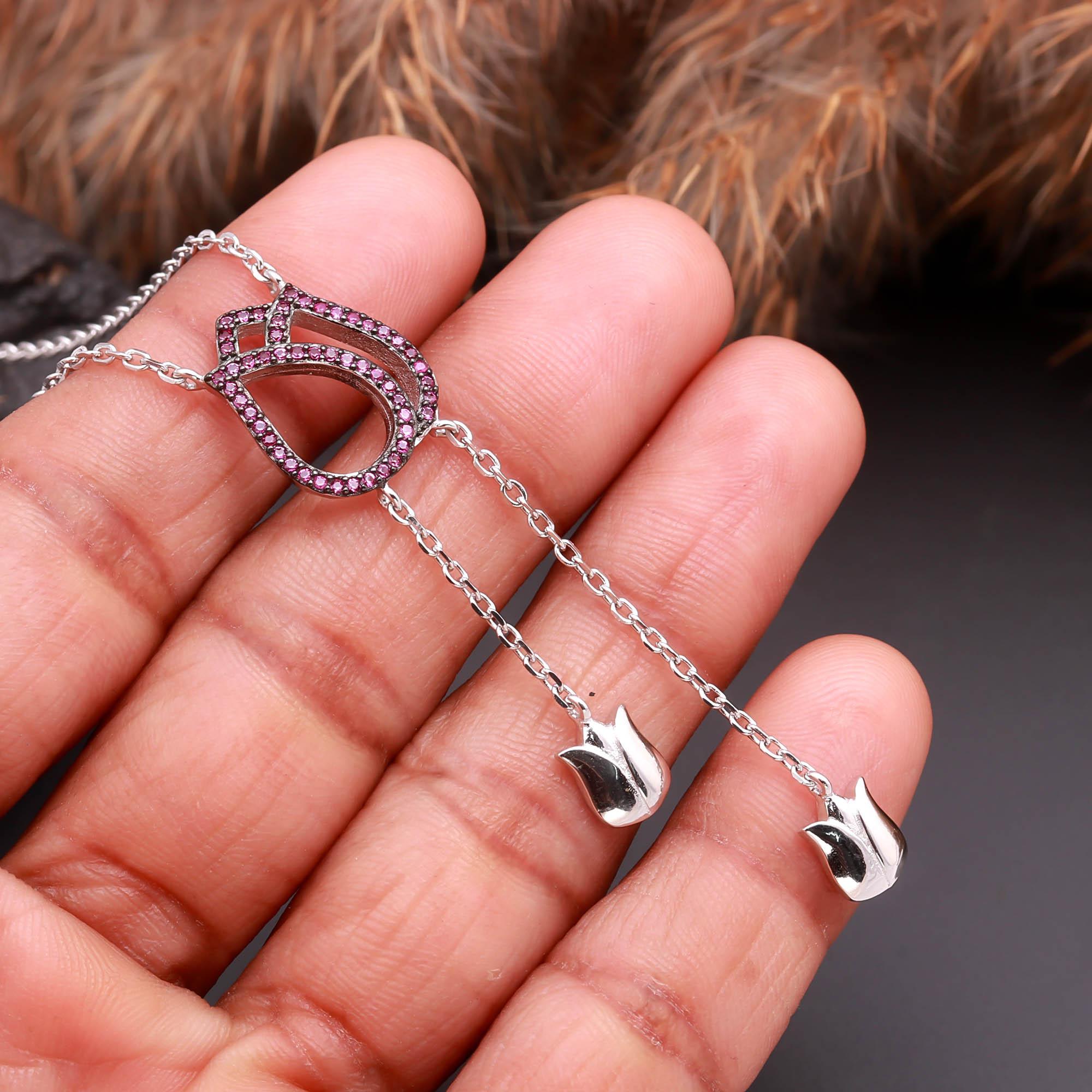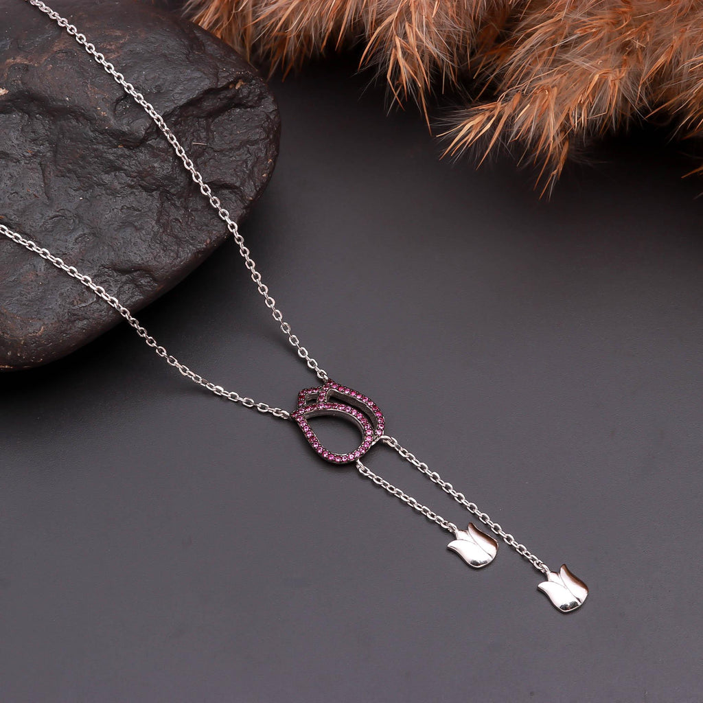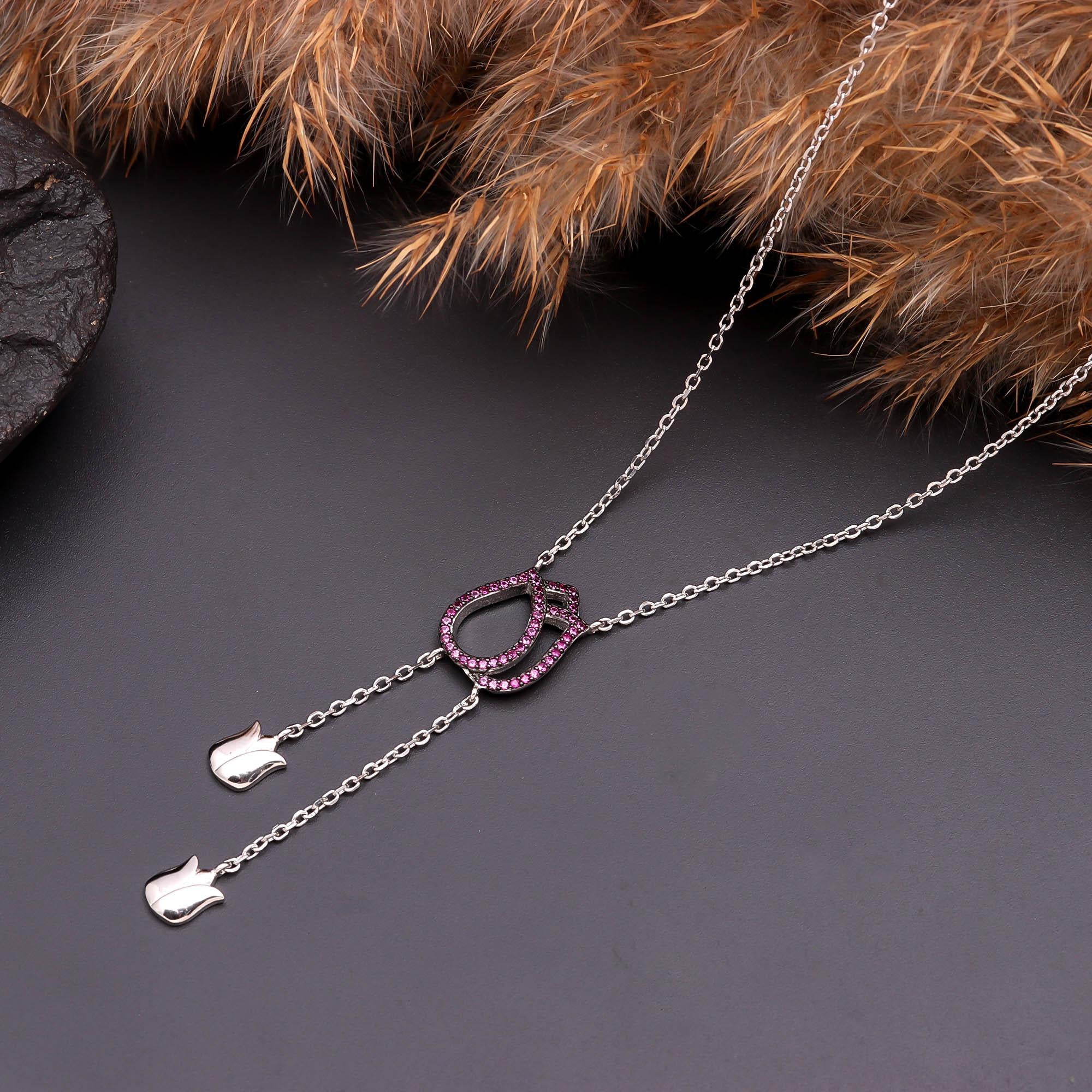 This elegant Teardrop Pendant Necklace features a refined blend of silver and pink tones, crafted from authentic 925 sterling silver. The sleek silver chain gracefully holds two petite pendants, leading to a central teardrop-shaped charm adorned with sparkling pink stones. Designed to catch the light beautifully, it adds a touch of sophistication and femininity to both everyday and special occasion looks. The high-quality silver ensures lasting shine, durability, and a comfortable wear.