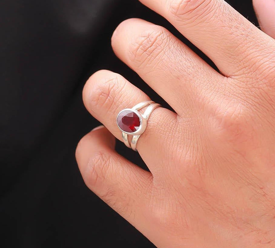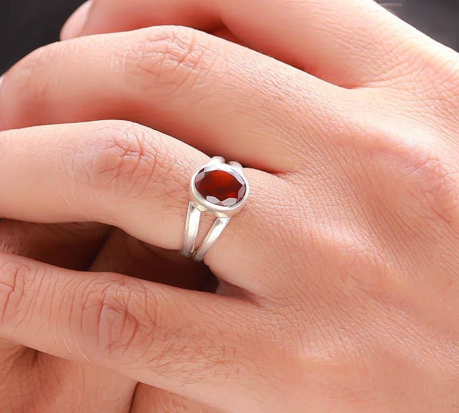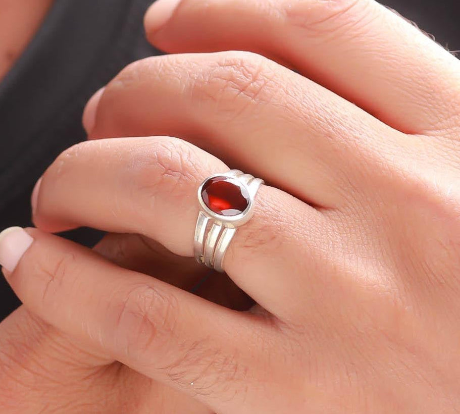 Garnet (Gomed) 925 Sterling Silver Ring Adjustable