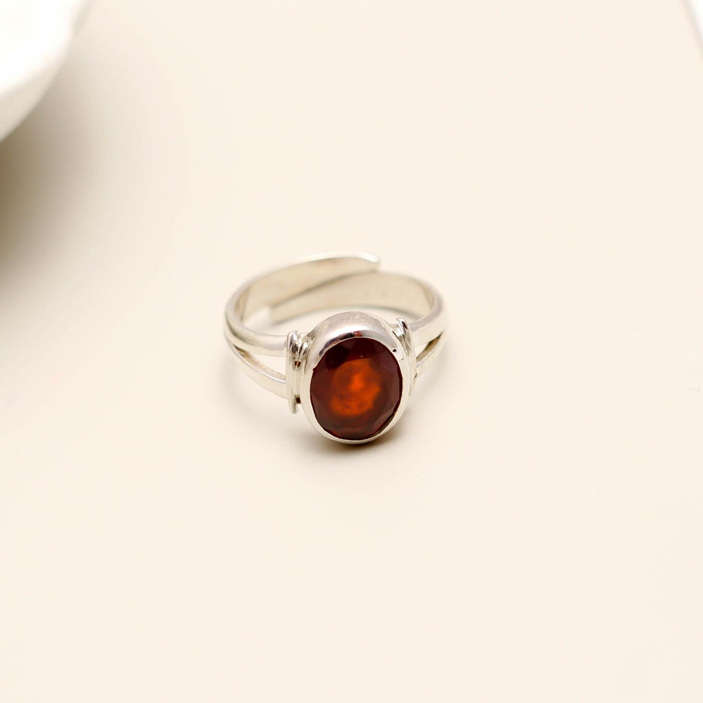 💍 Hessonite Garnet (Gomed) 925 Silver Adjustable Ring ✨