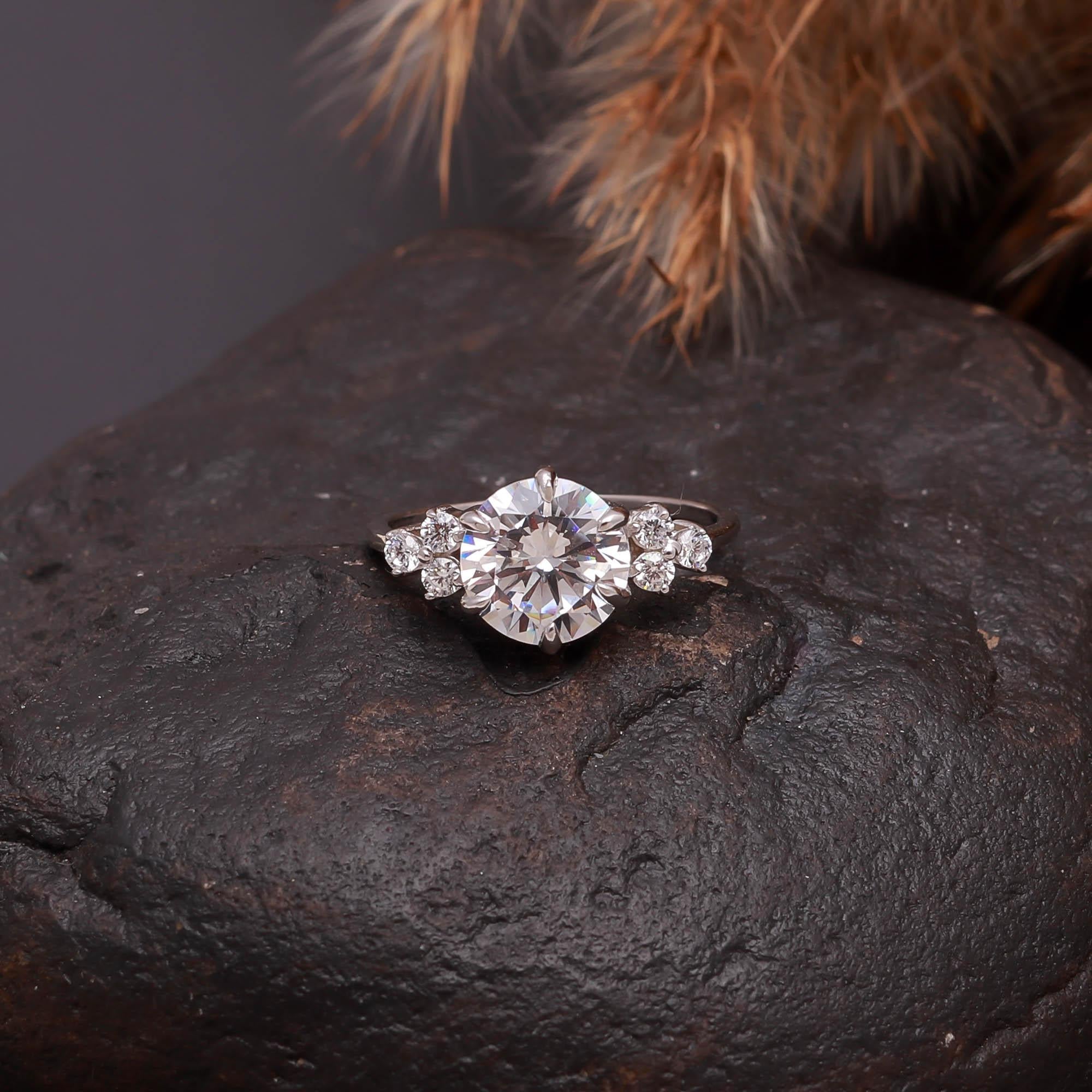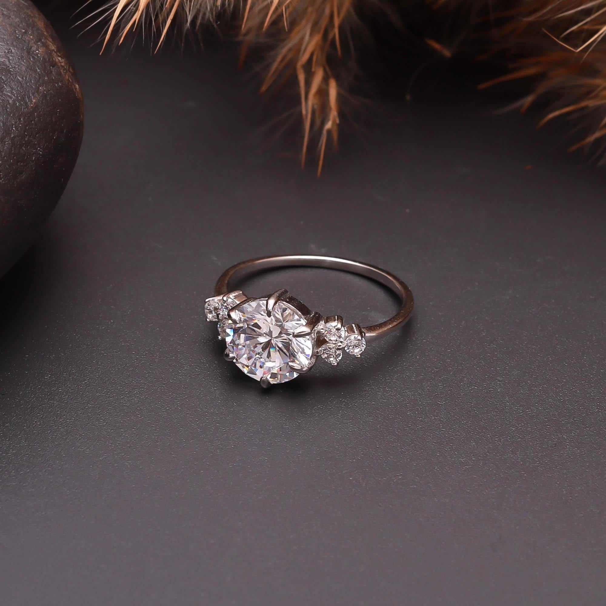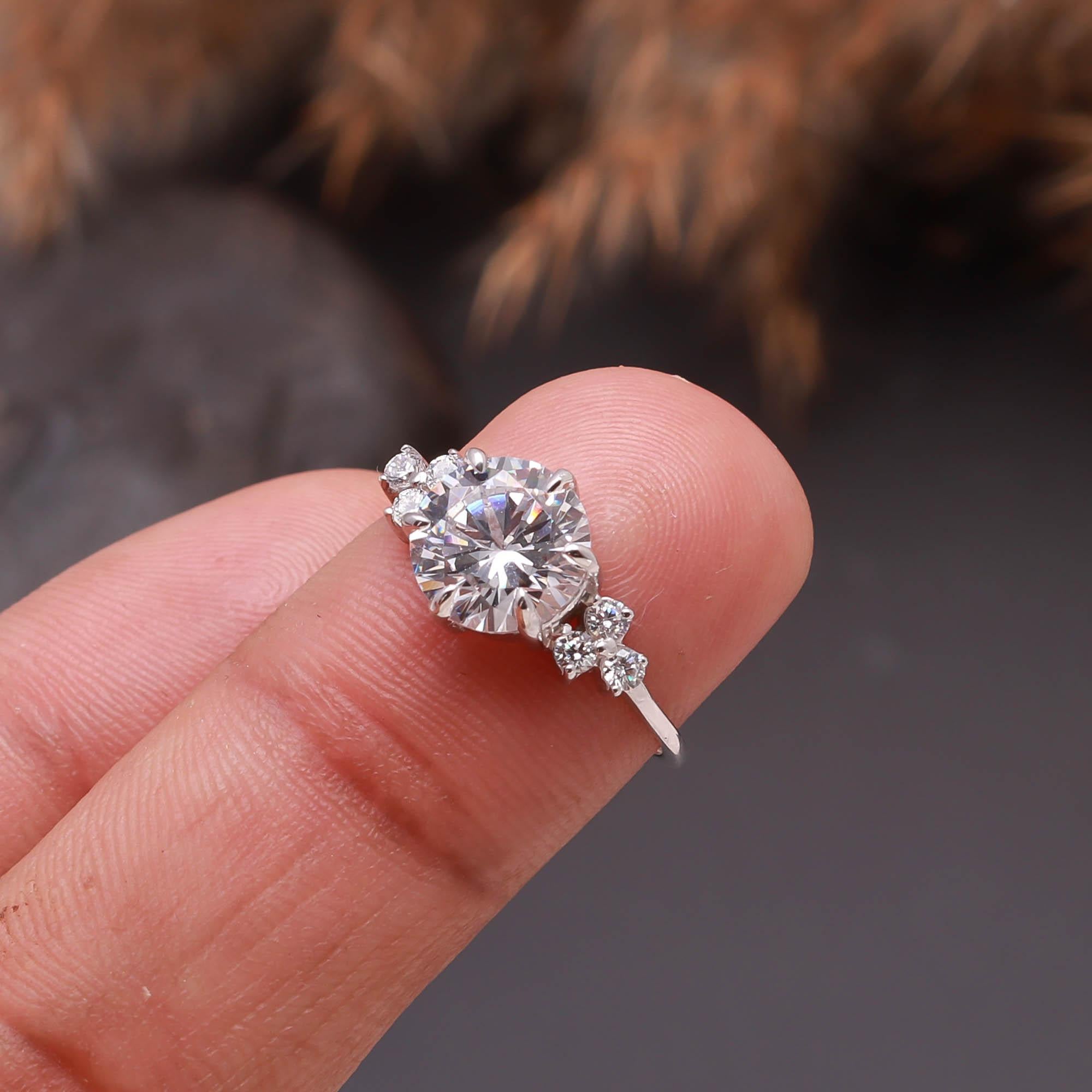 Round Cut Moissanite 925 Sterling Silver Engagement Ring