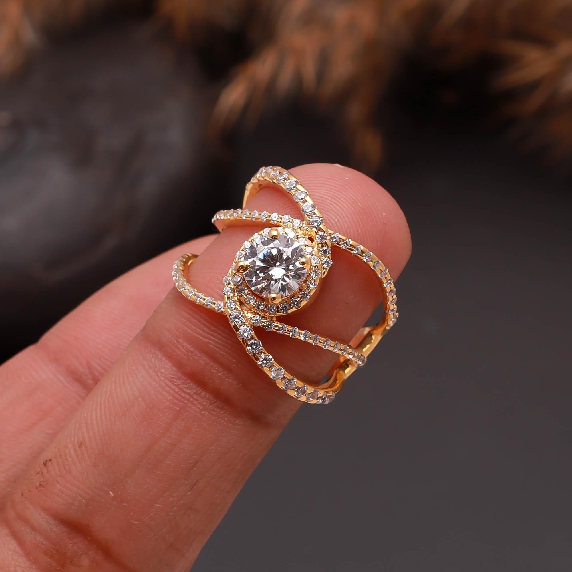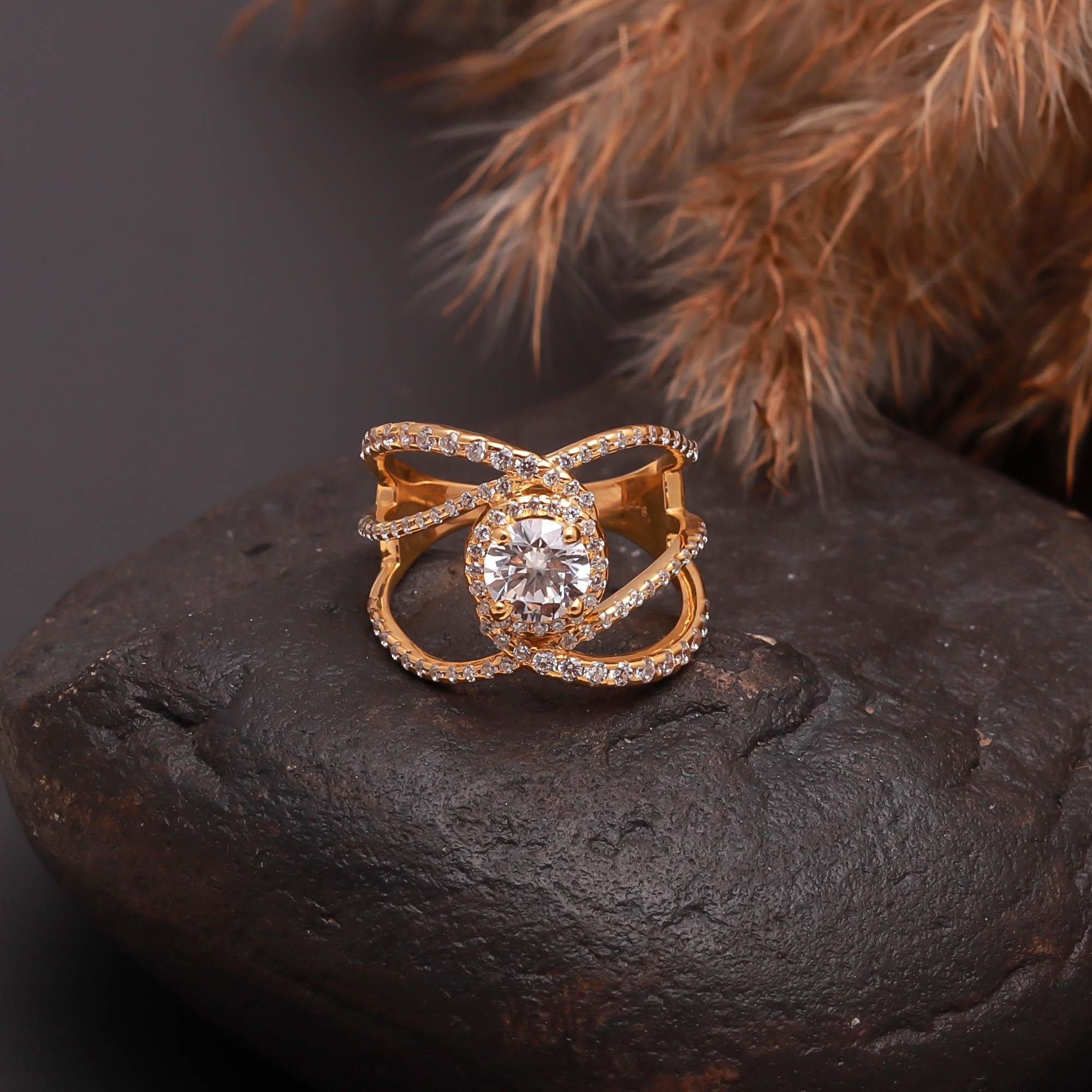 Moissanite 925 Sterling Silver Elegant Gold Statement Ring
