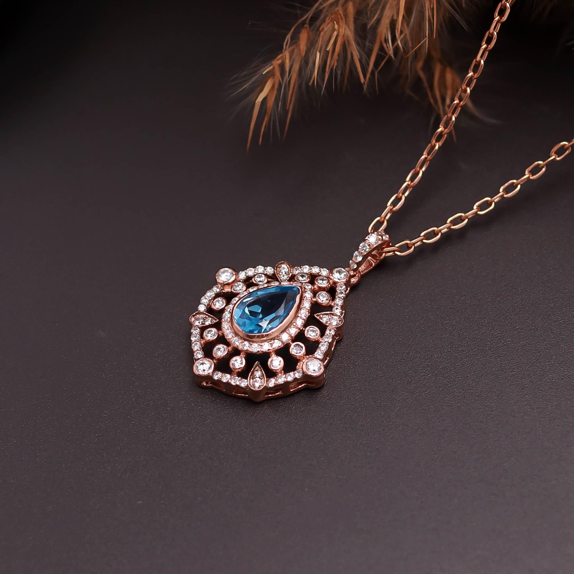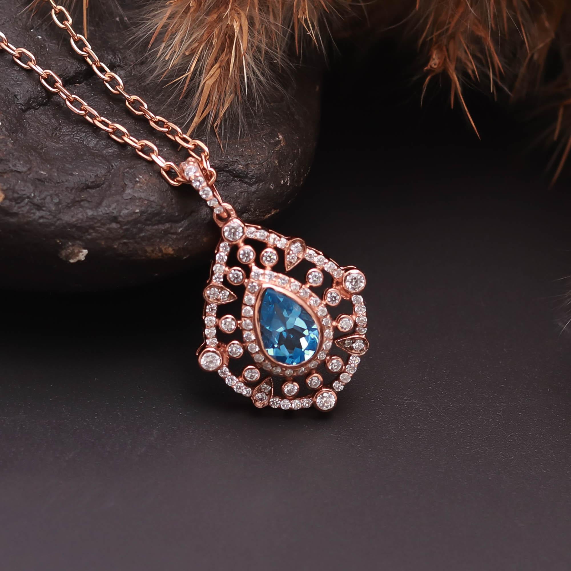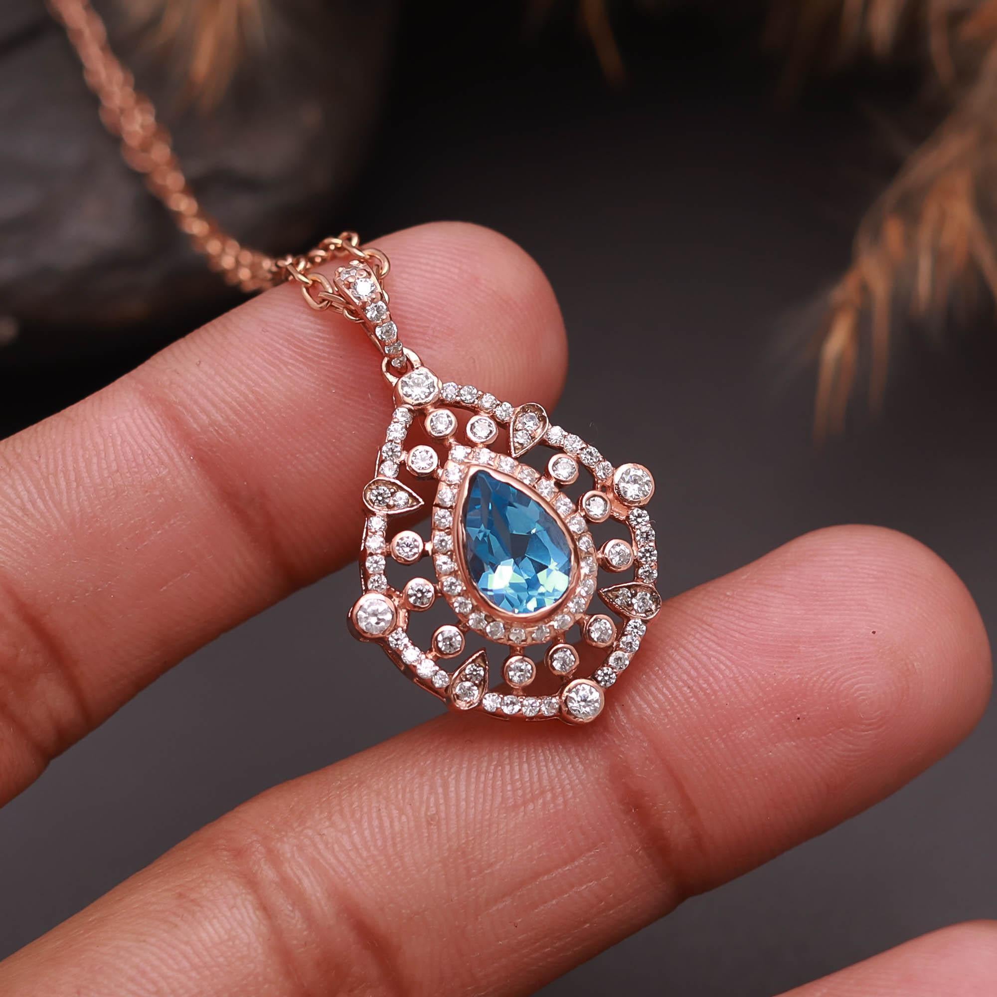 Blue Topaz Teardrop Halo Pendant – Silverhub Jewelry India