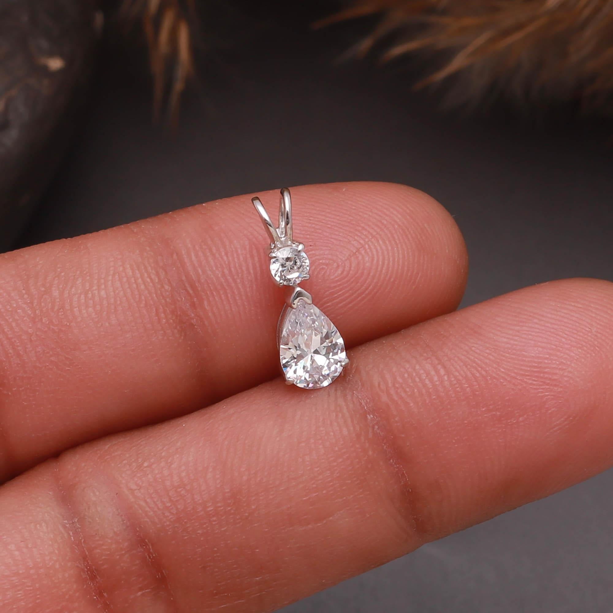 Pear-Shaped Moissanite Pendant with Round Accent Stone