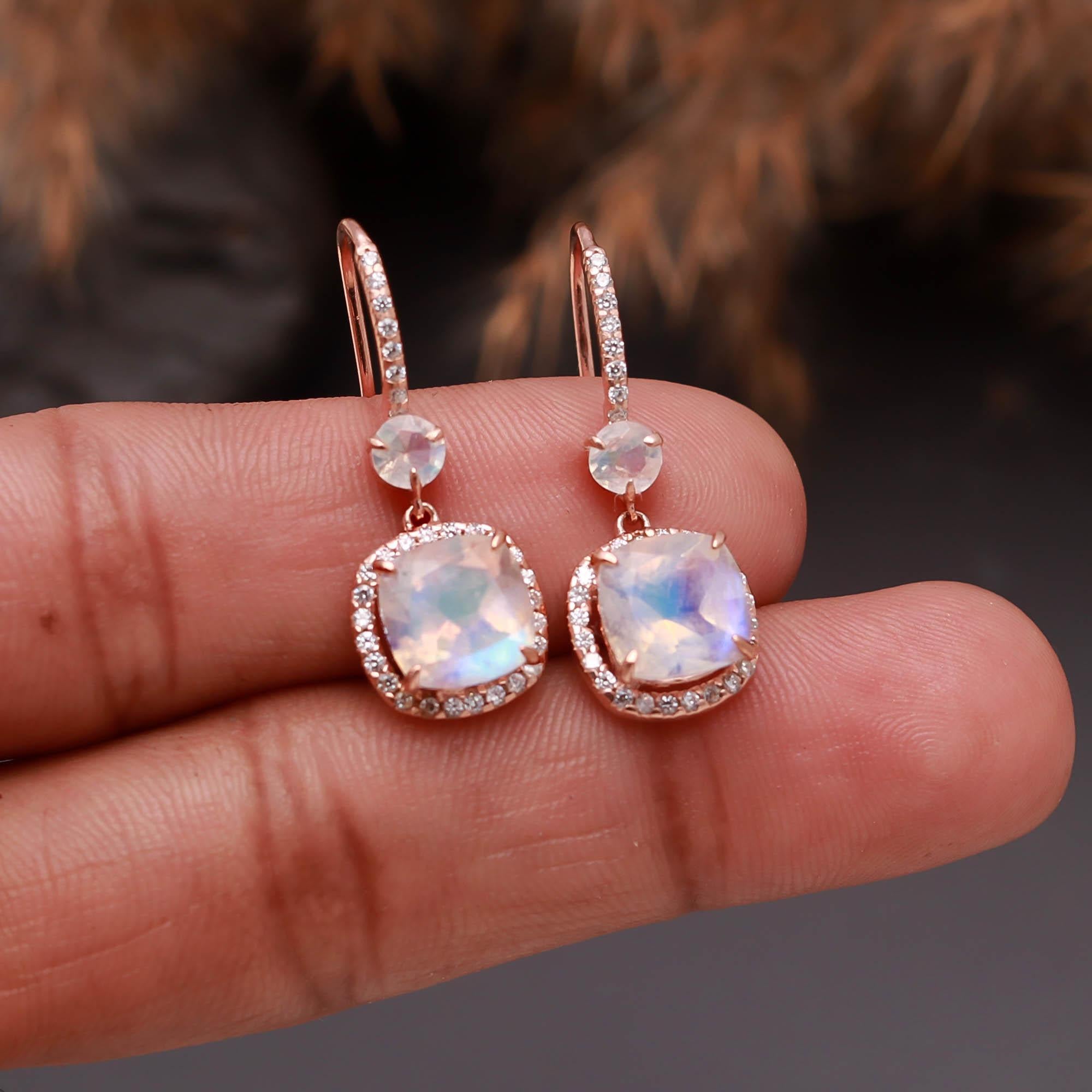 Rainbow Moonstone Drop Earrings – Silverhub Jewelry India