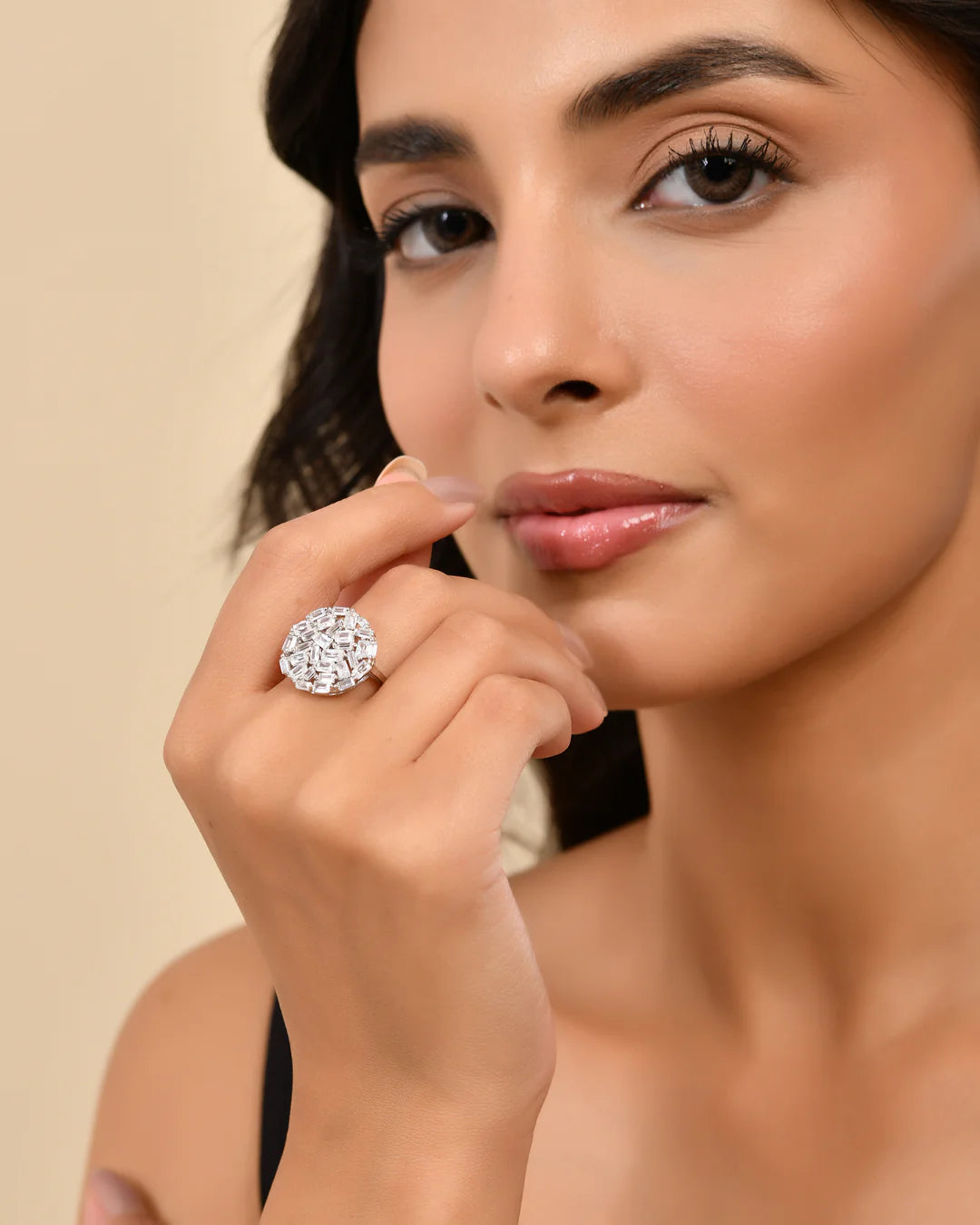 Cocktail Diamond 925 Sterling Silver Adjustable ring