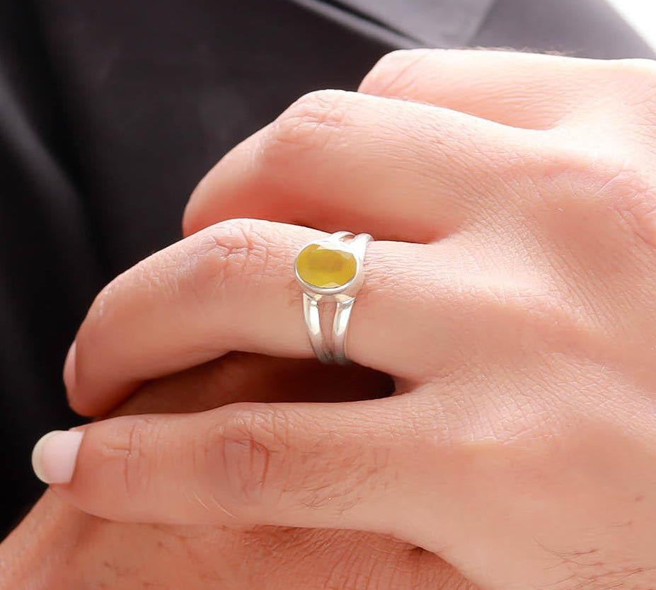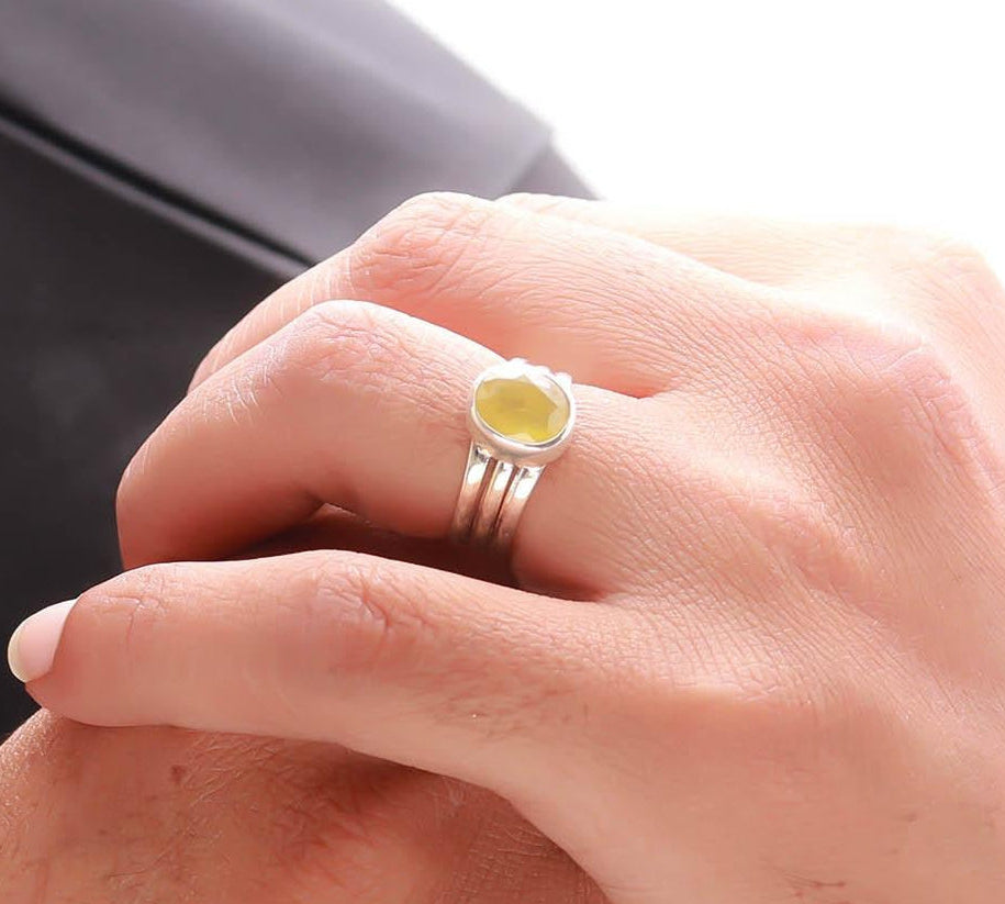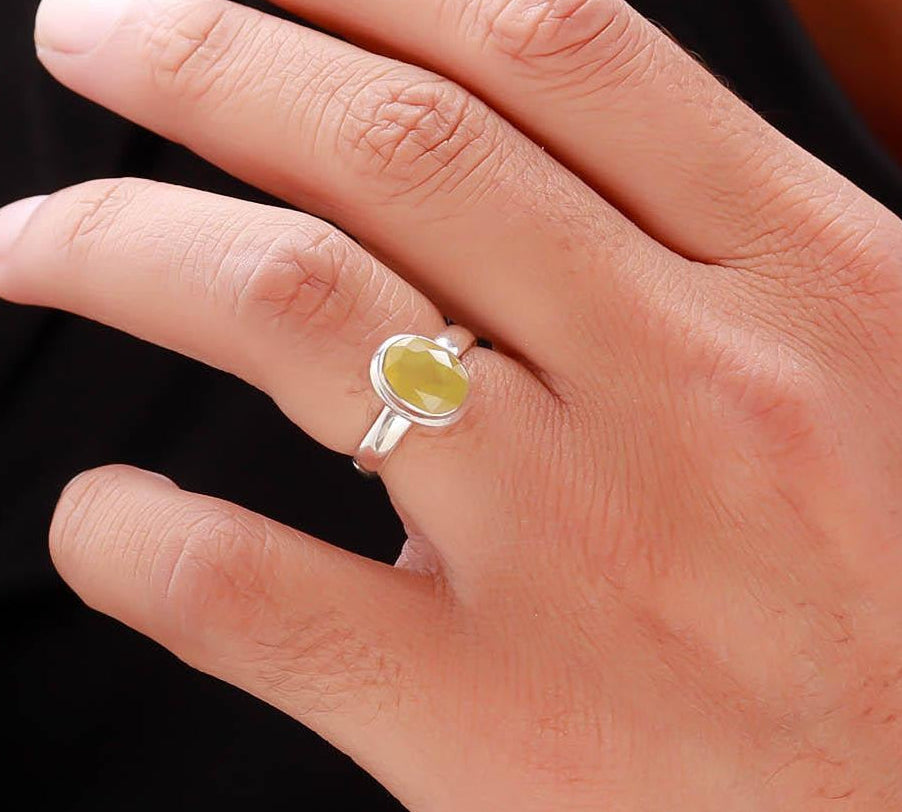 Yellow Sapphire (pukhraj) 925 Sterling Silver Ring Adjustable