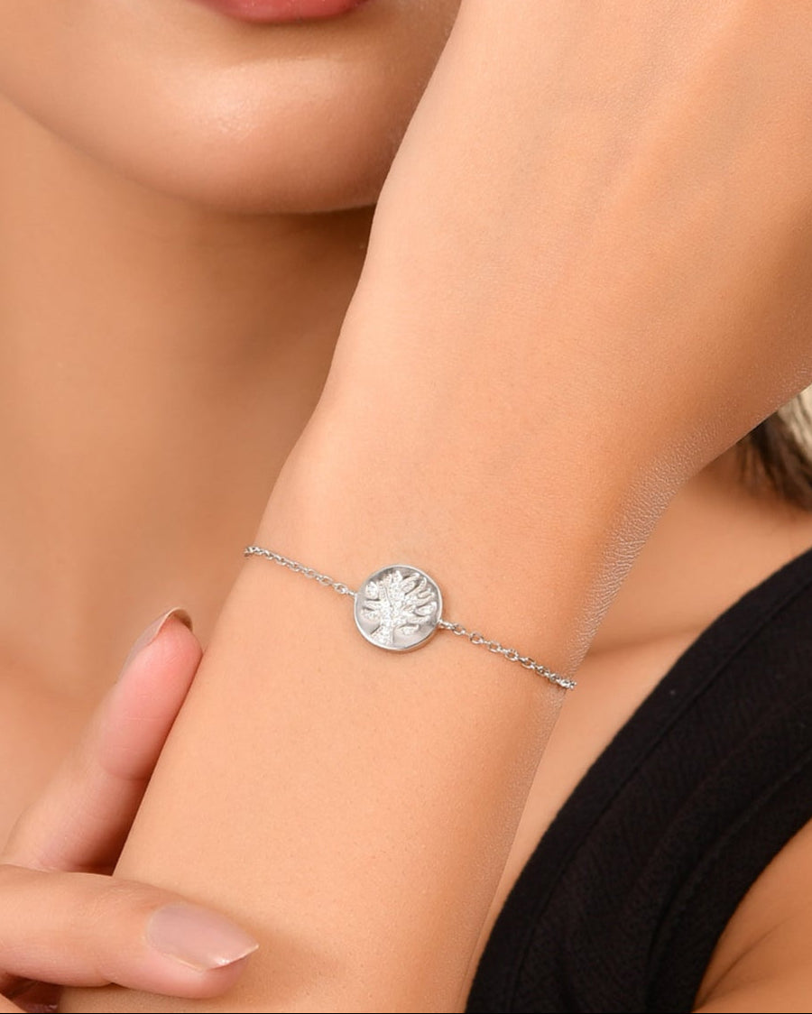 This elegant bracelet features a finely detailed Tree of Life motif crafted from authentic 925 sterling silver. Symbolizing growth and connection, its design blends meaningful artistry with durable craftsmanship. The polished finish and secure clasp make it both a sophisticated and lasting accessory for everyday wear or special occasions.