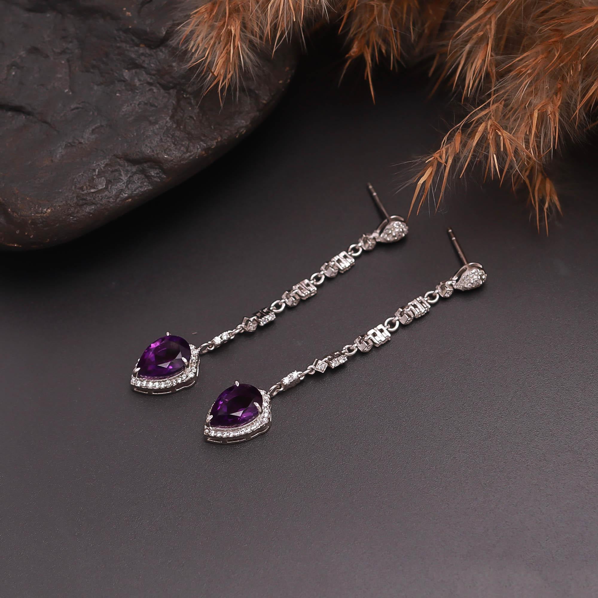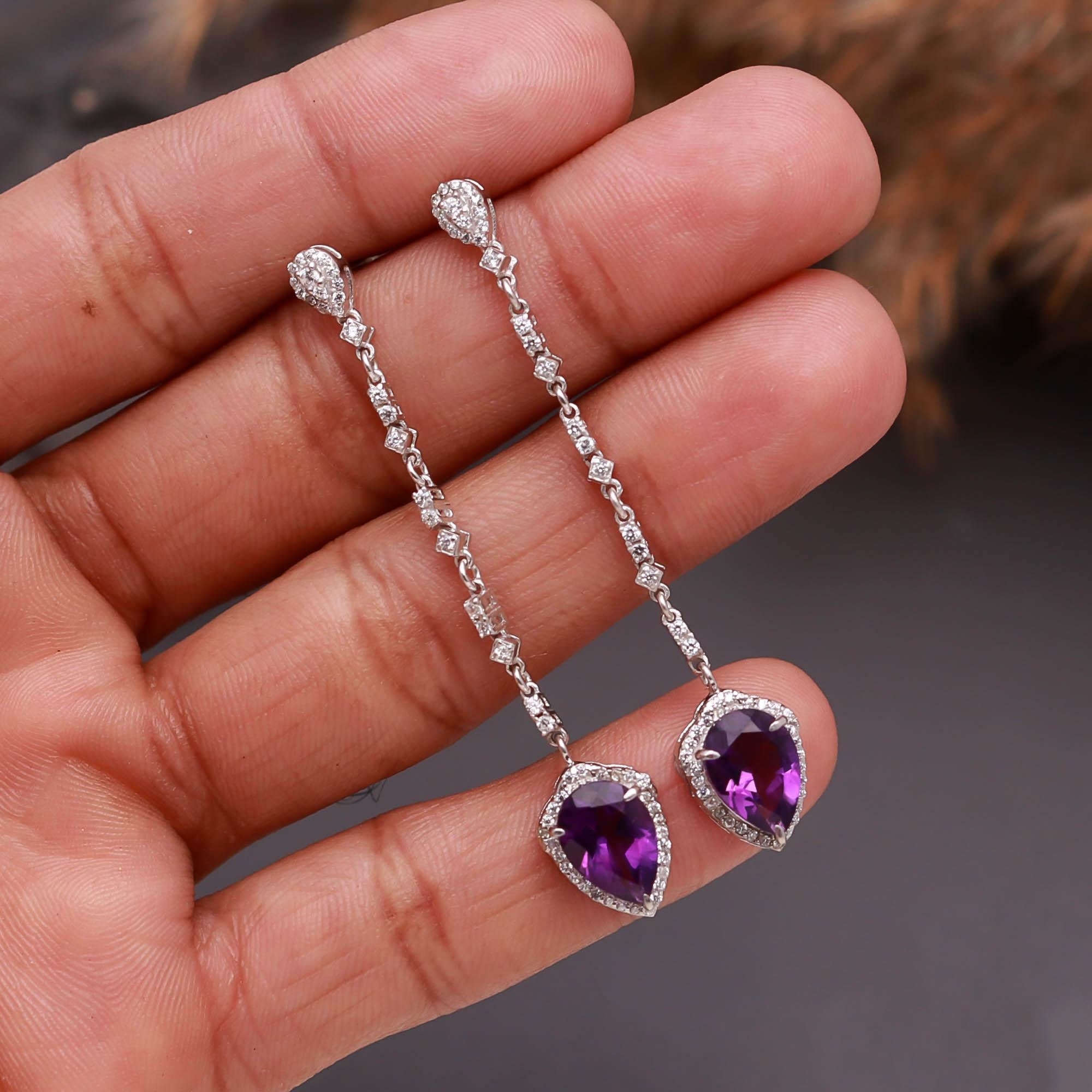 Elegant Amethyst Drop Earrings – Silverhub Jewelry India