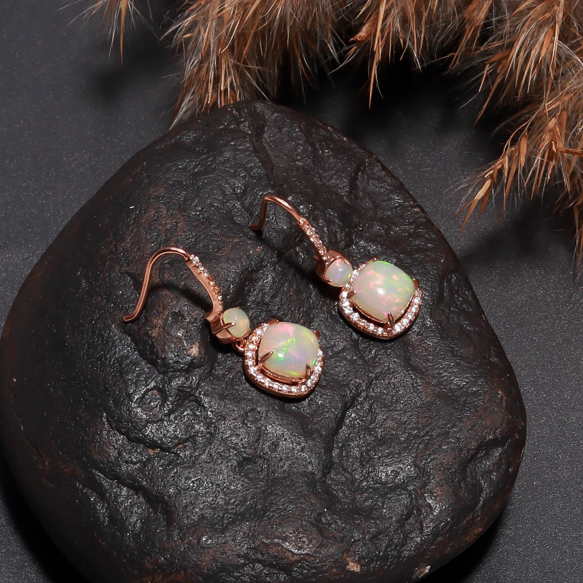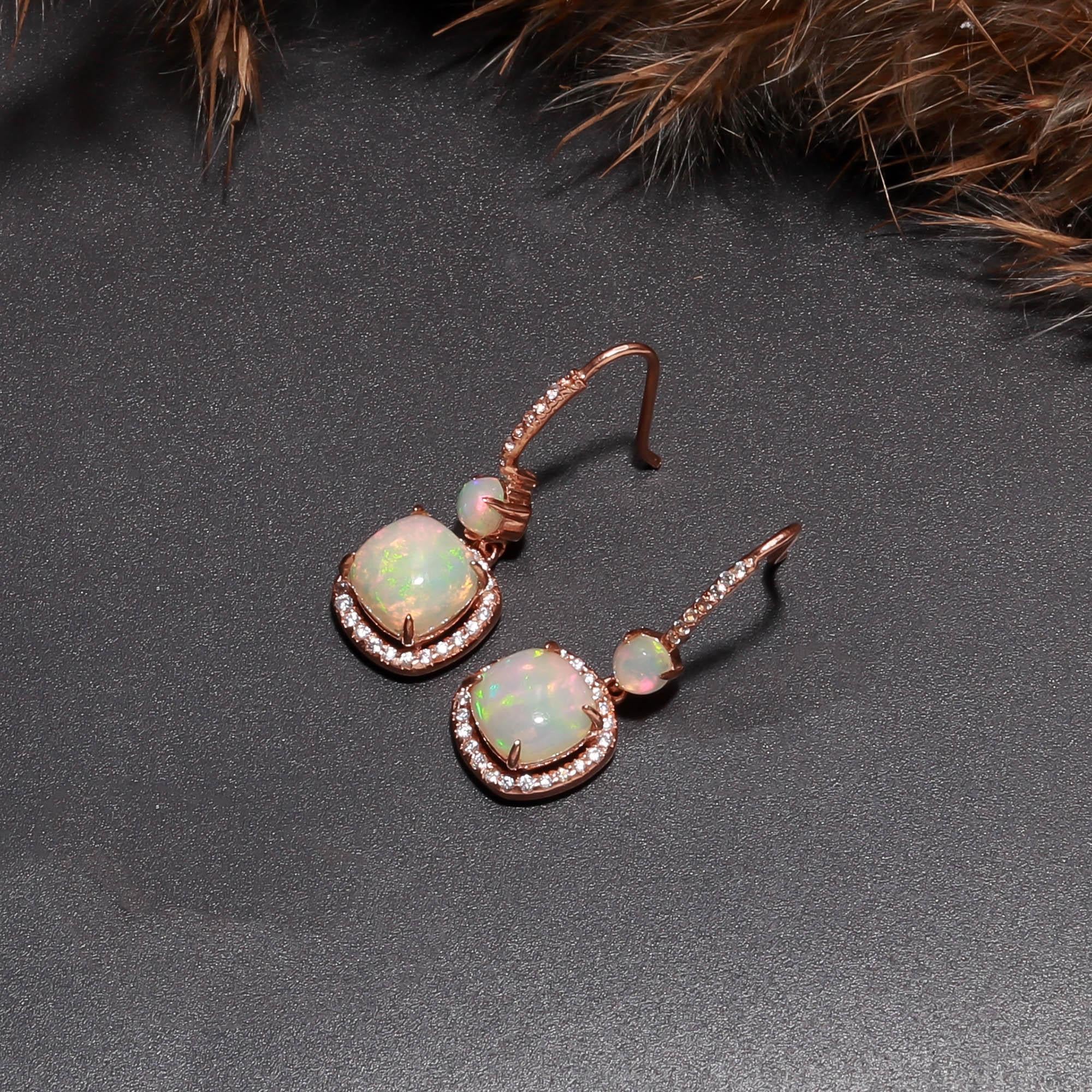 Ethiopian Opal Drop Earrings with Diamond Accents – Silverhub Jewelry India