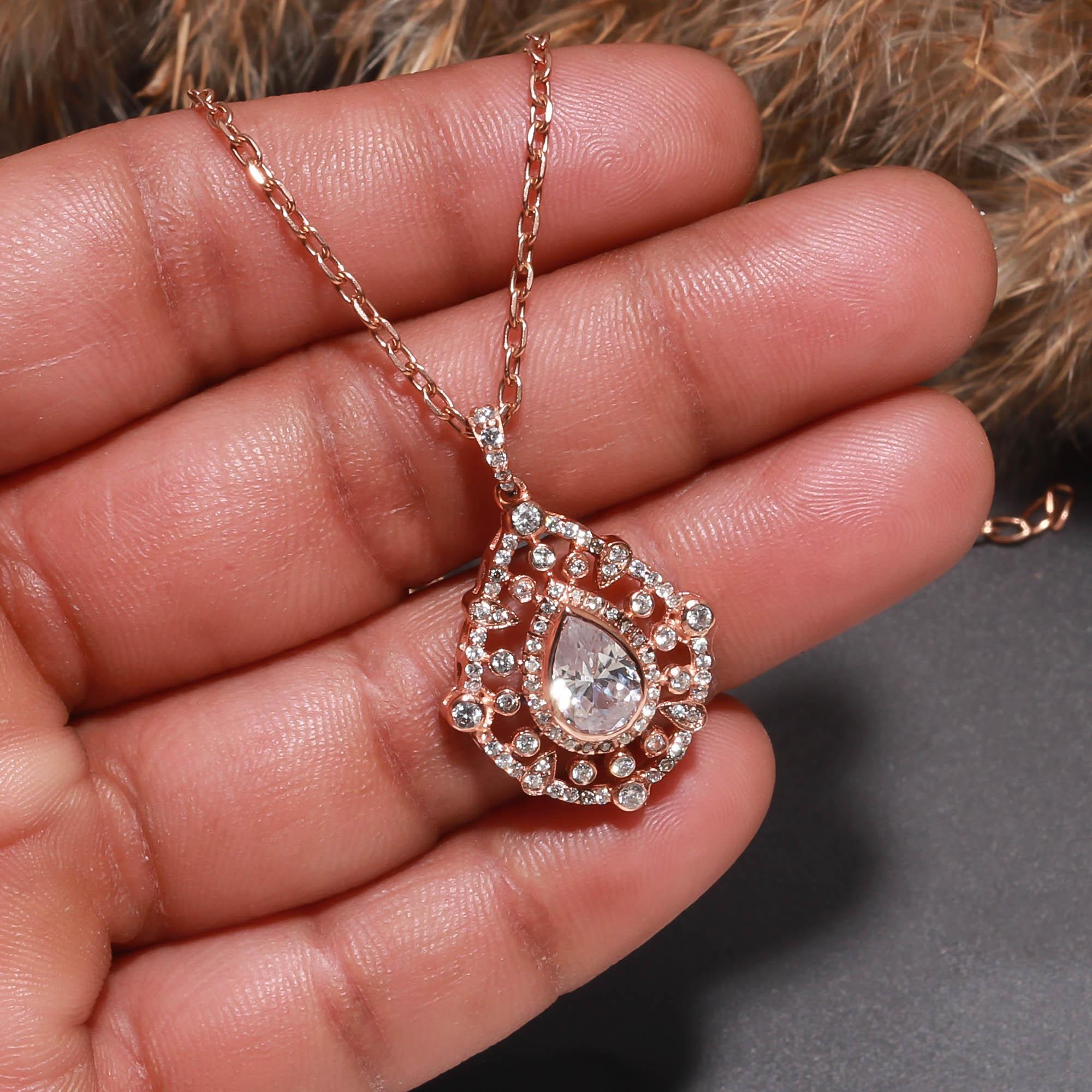 Pear-Shaped Halo Moissanite Pendant – Silverhub Jewelry India