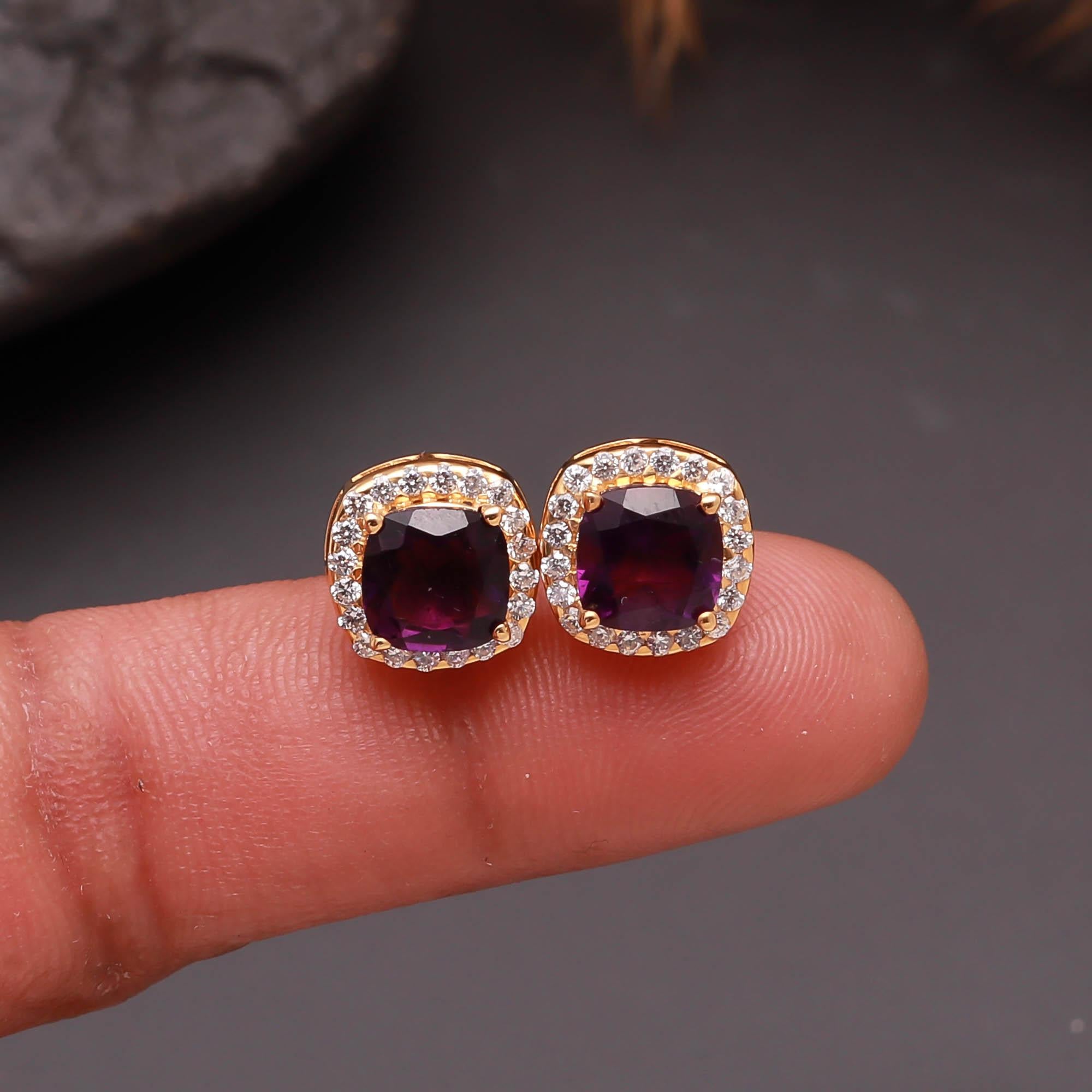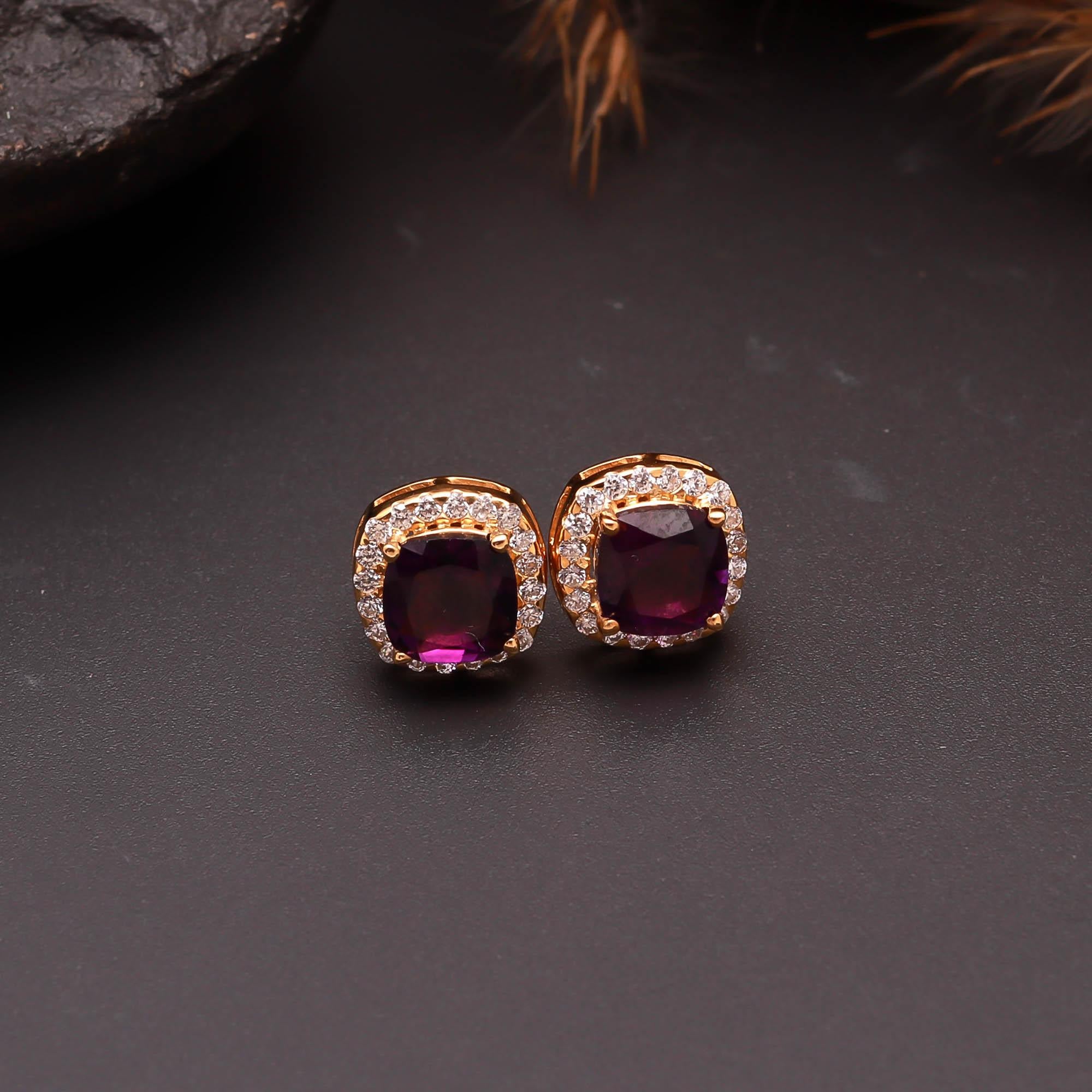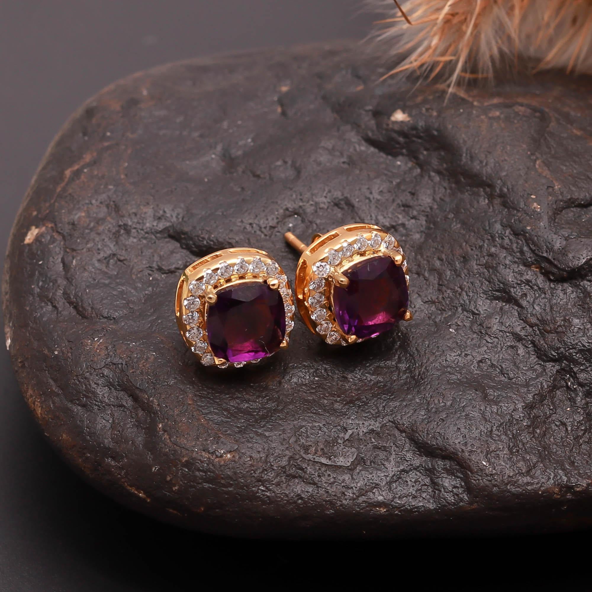 Amethyst Stud Earrings with Halo Setting – Silverhub Jewelry India
