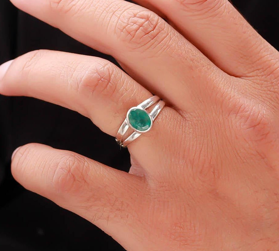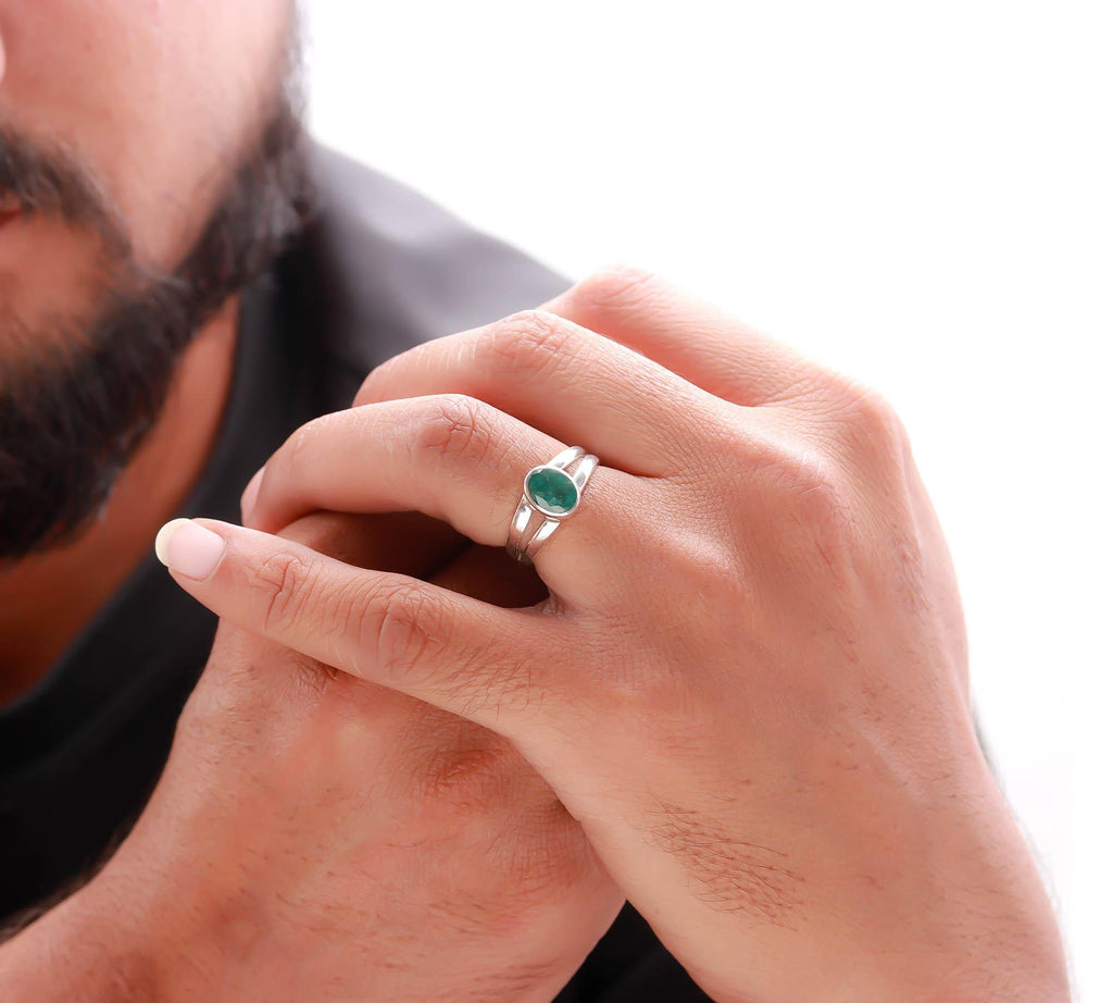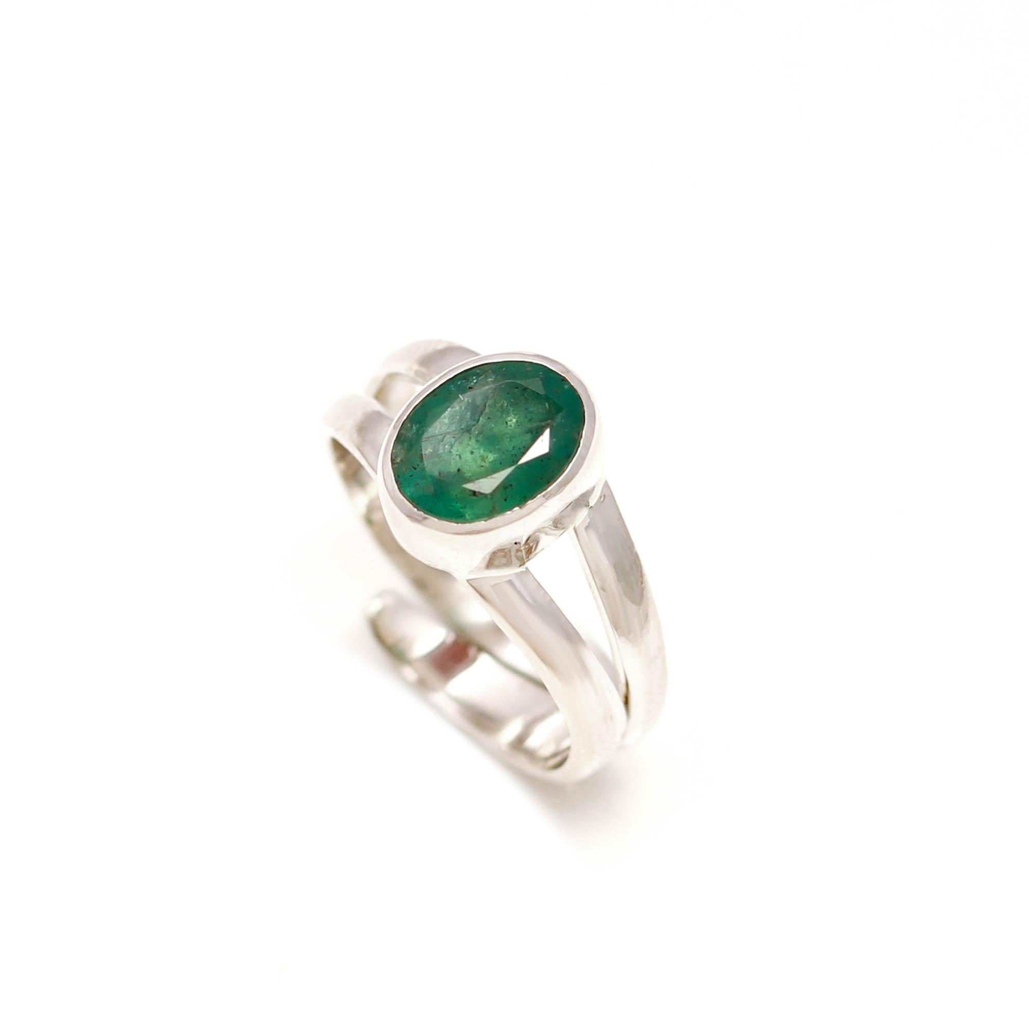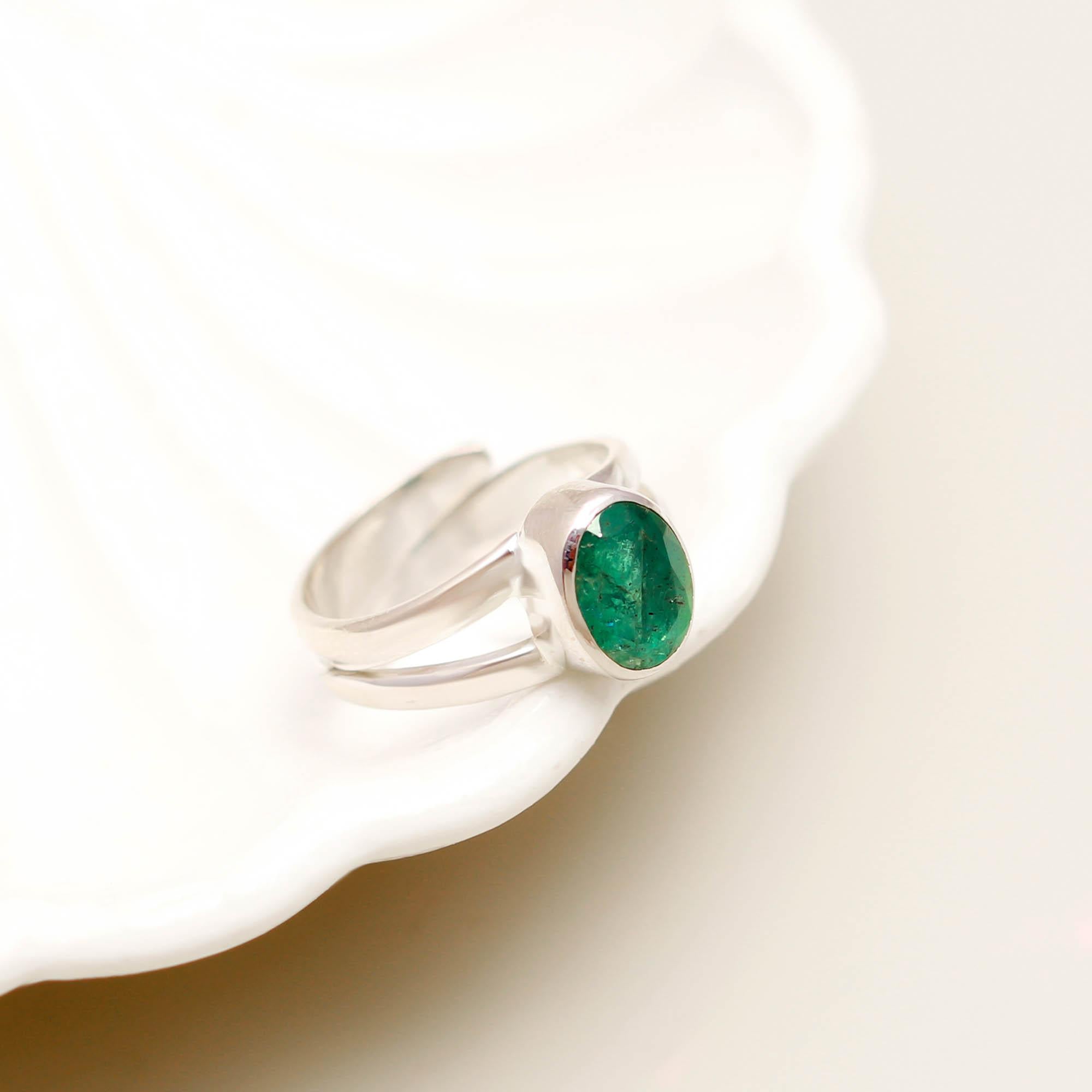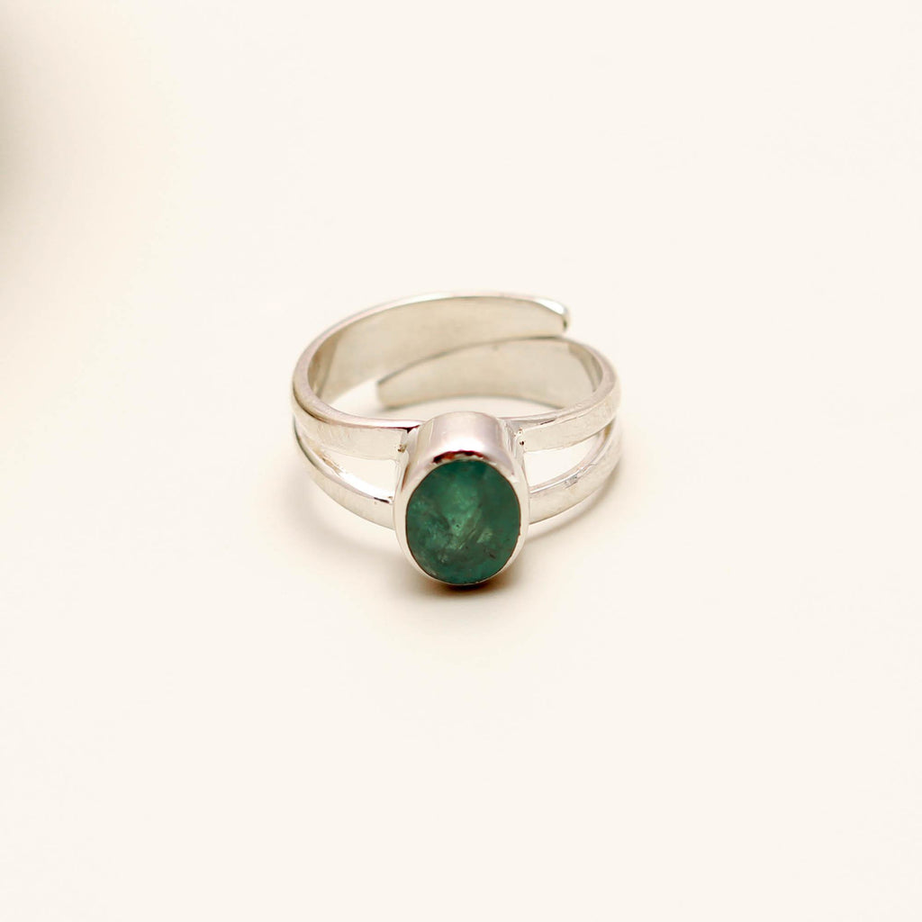 Emerald (Panna) 925 Sterling Silver Adjustable Ring – Silverhub Jewelry India