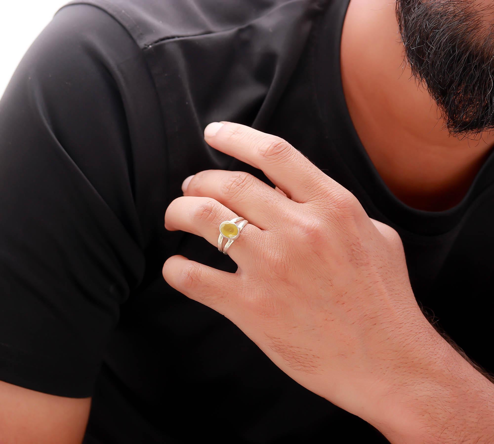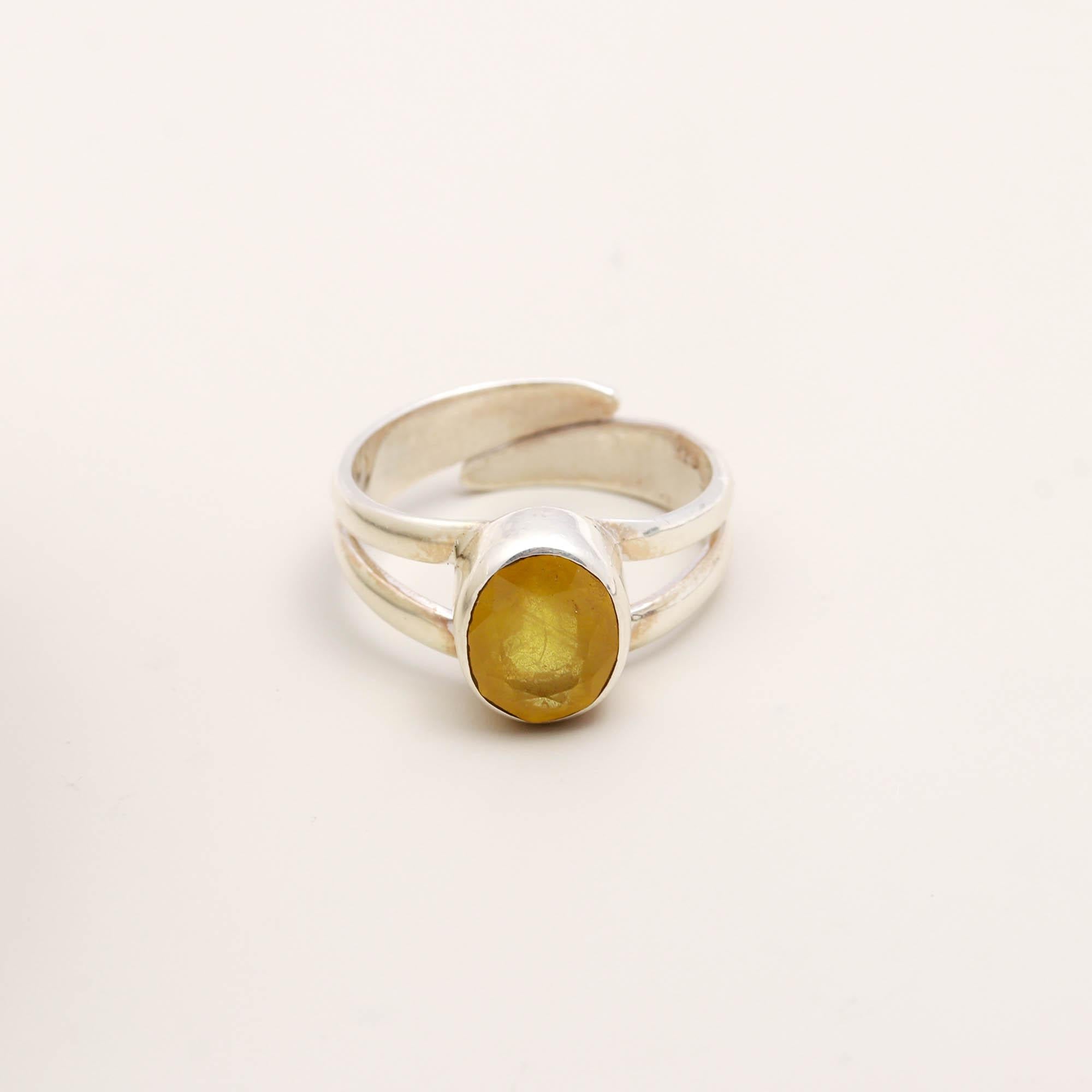 π Yellow Sapphire (Pukhraj) 925 Silver Adjustable Ring β¨