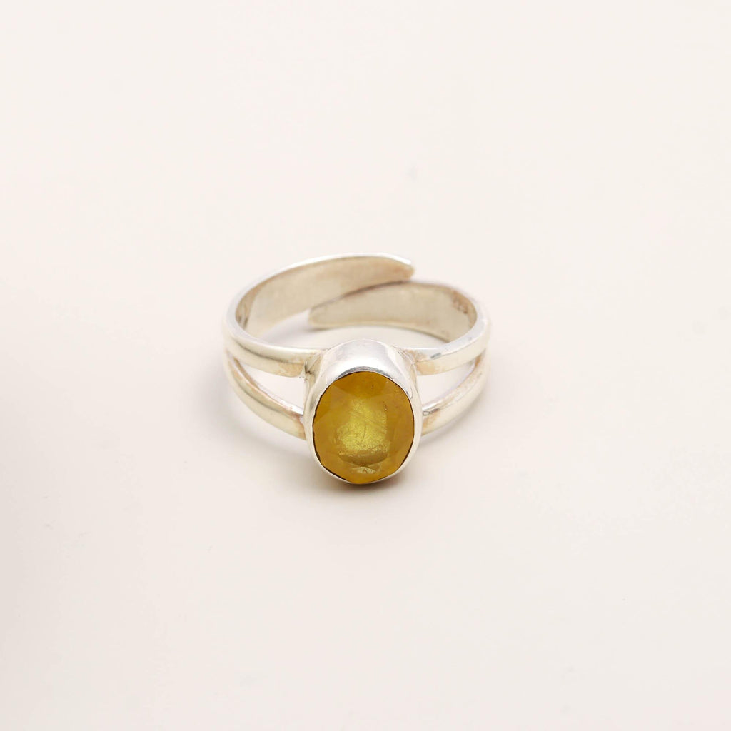 Yellow Sapphire (Pukhraj) 925 Sterling Silver Adjustable Ring