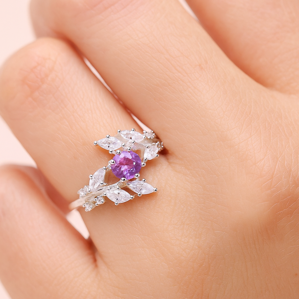 Ruby 925 Sterling Silver Elegant Round Faceted Ring