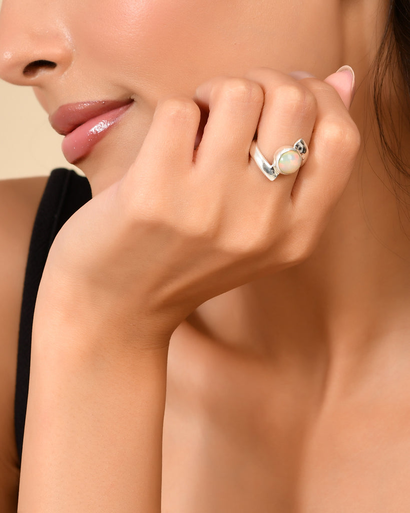 This adjustable ring highlights a captivating Ethiopian opal set in durable 925 sterling silver. Known for its stunning interplay of colors, the Ethiopian opal brings a unique vibrancy to the design. The sterling silver band ensures lasting strength and a polished finish, while the adjustable feature allows a customized, comfortable fit