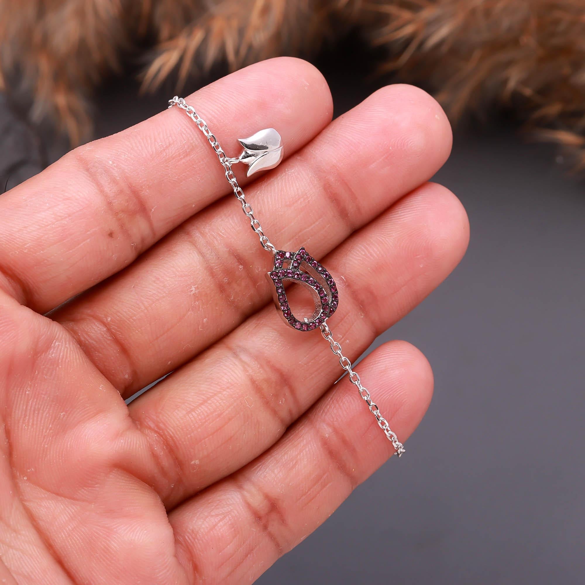 💗 Sterling Silver Bracelet with Pink Gemstones