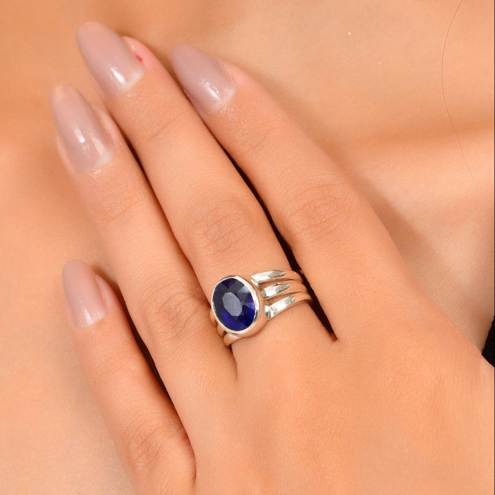 Blue Sapphire (Neelam) 925 Sterling Silver Ring Adjustable