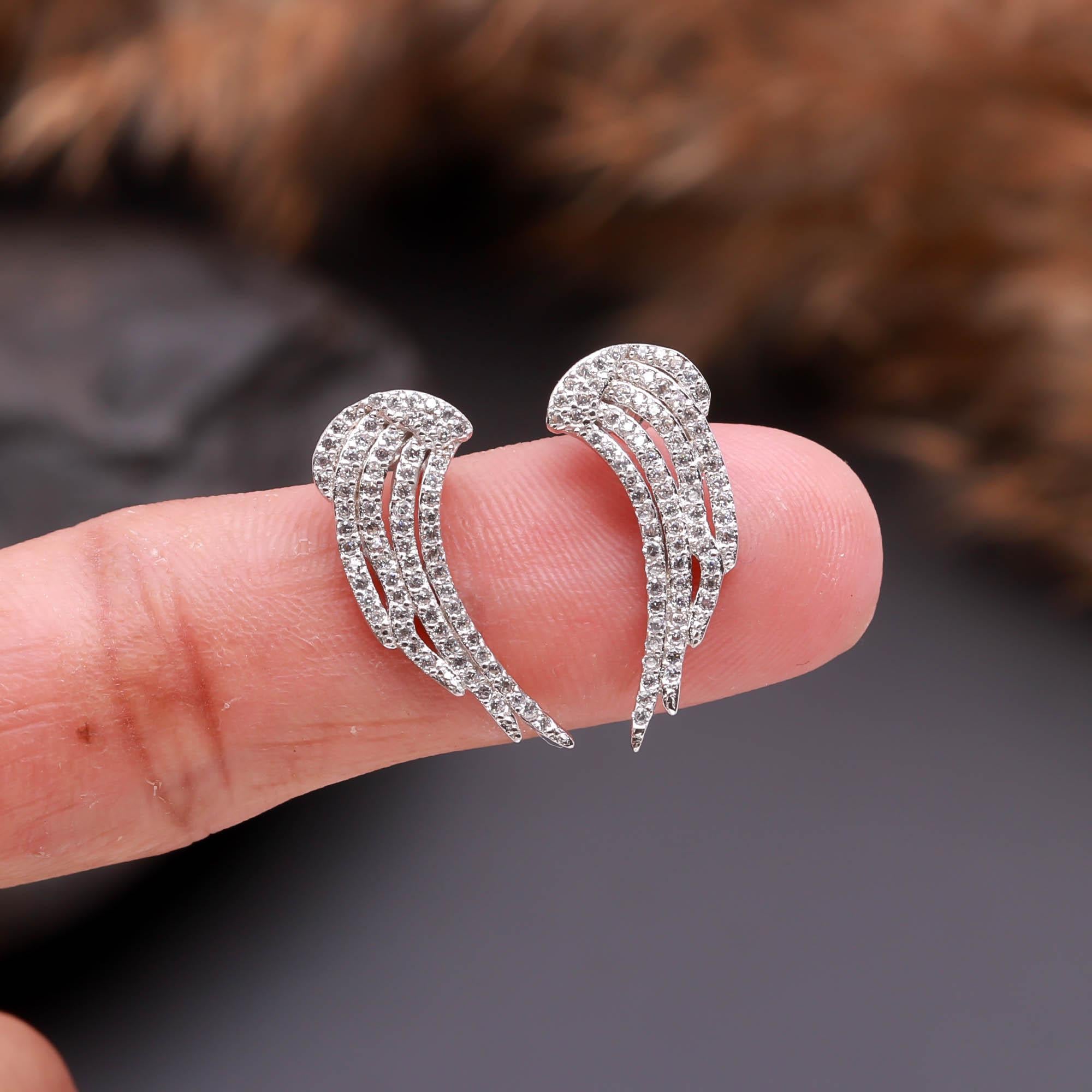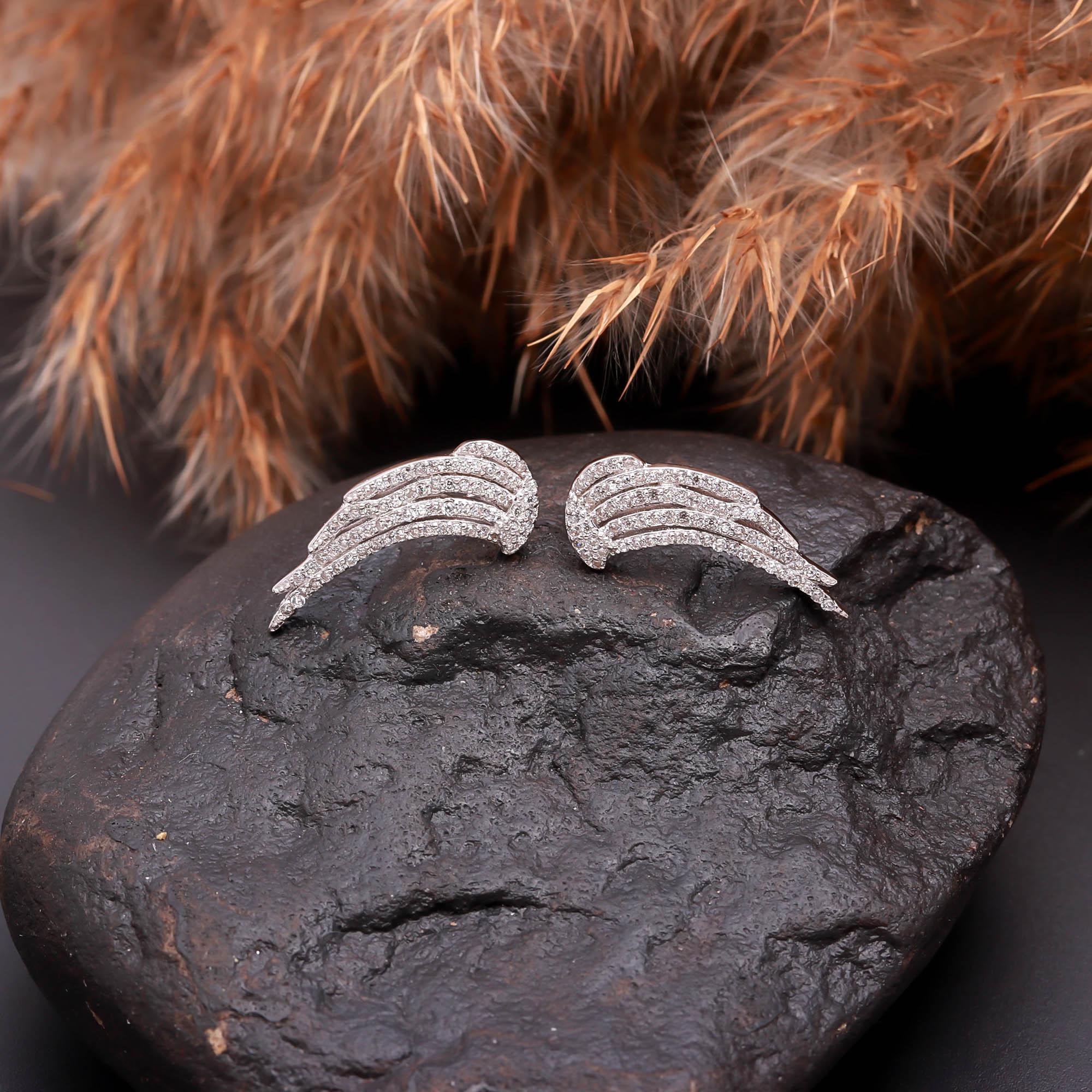 Wing-Shaped Diamond Earrings – Silverhub Jewelry India