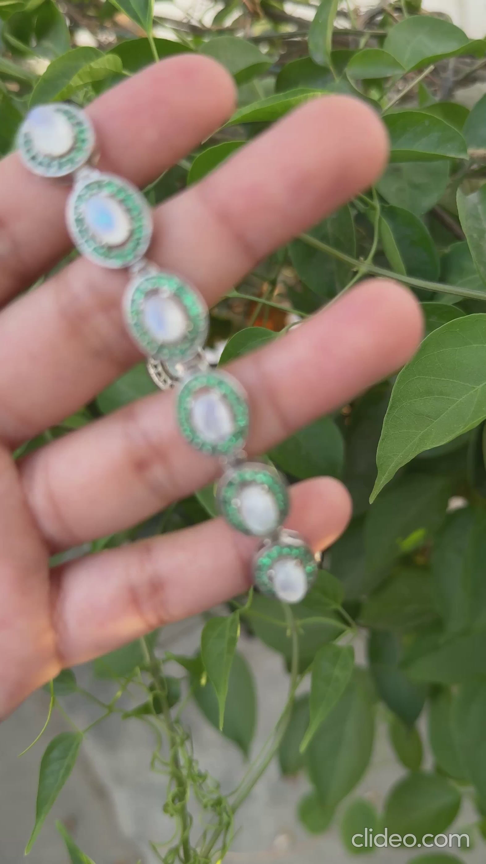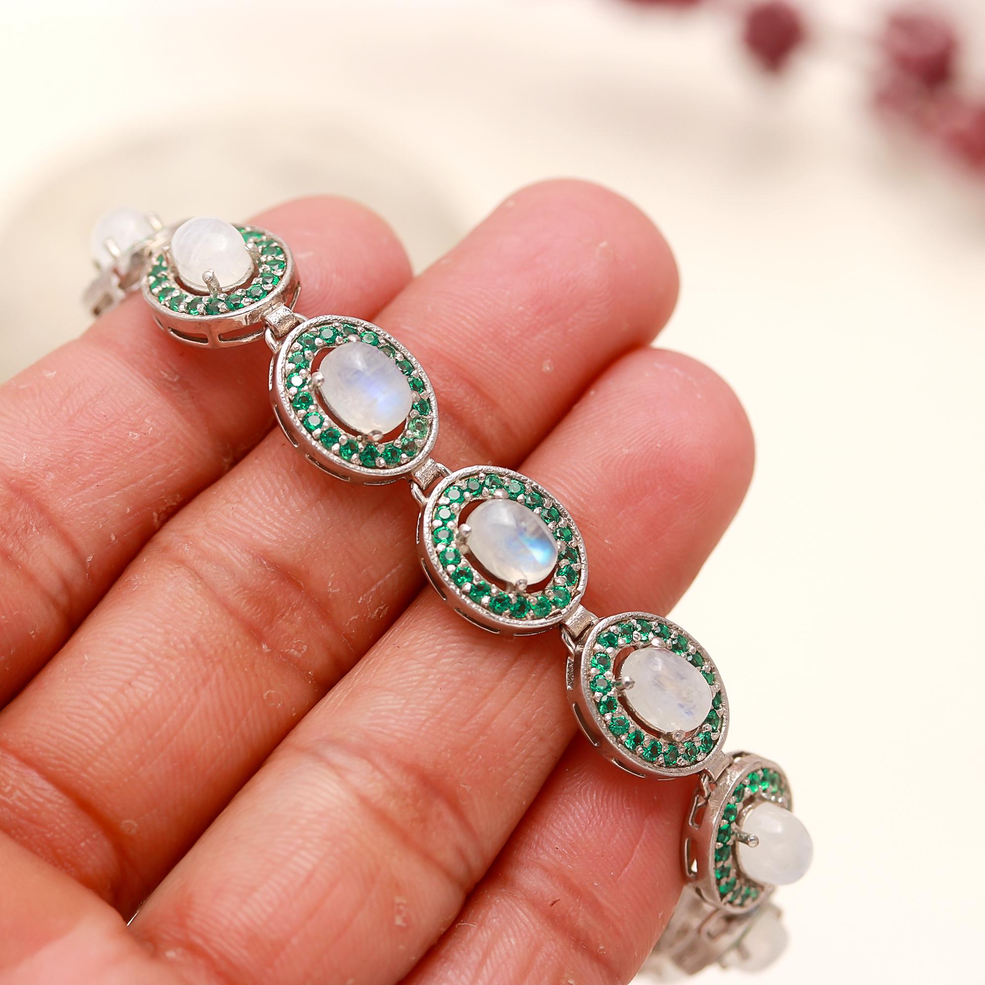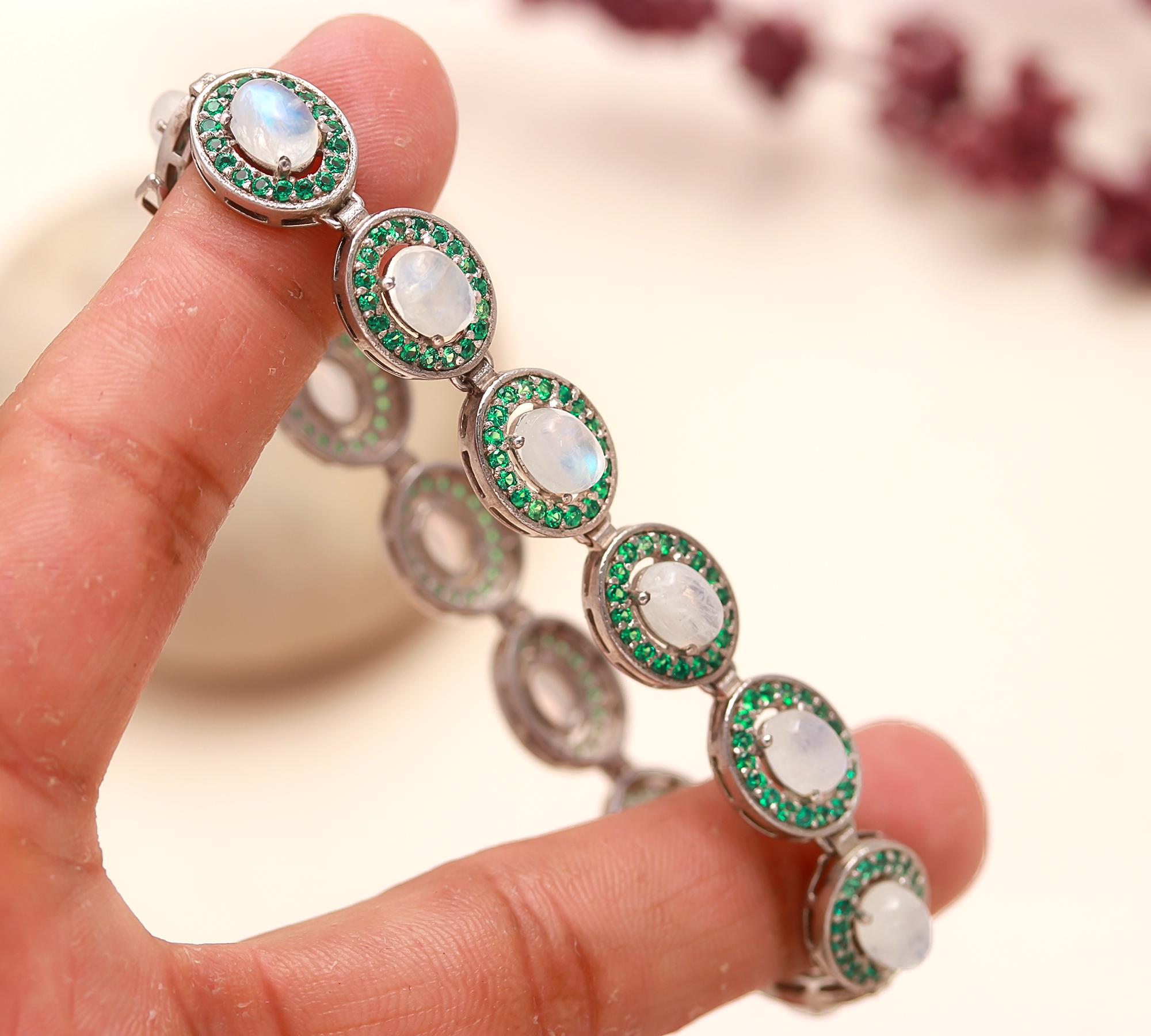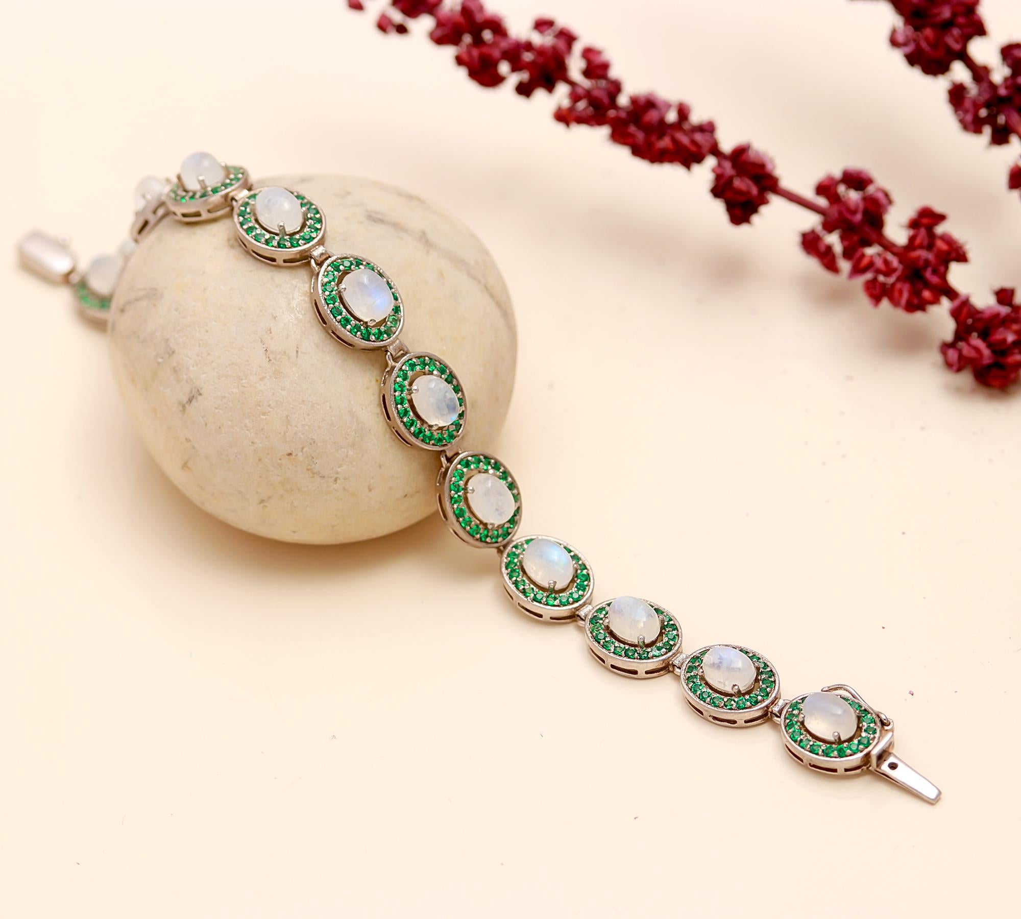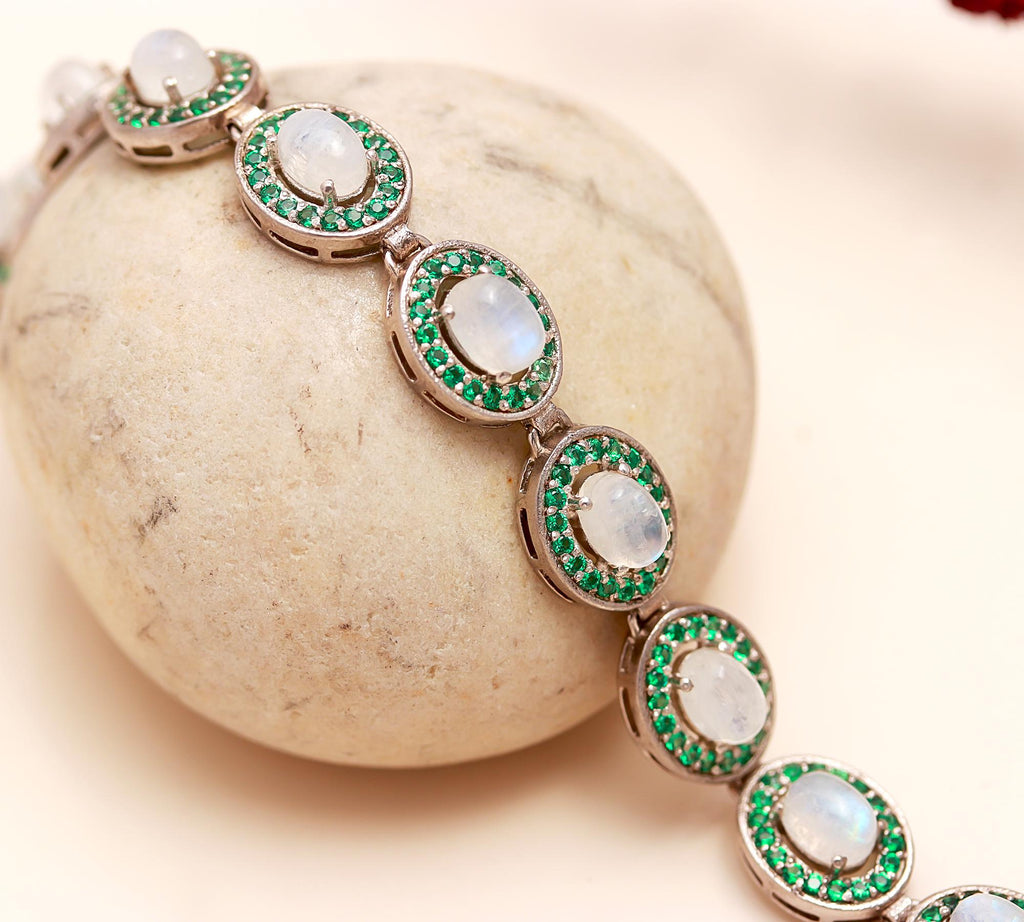 925 SILVER GREEN EMERALD MOONSTONE BRACELET