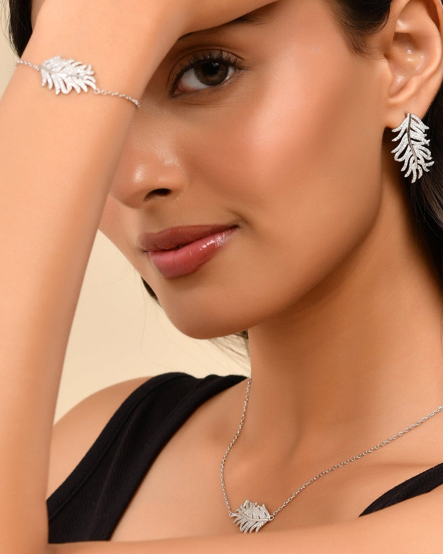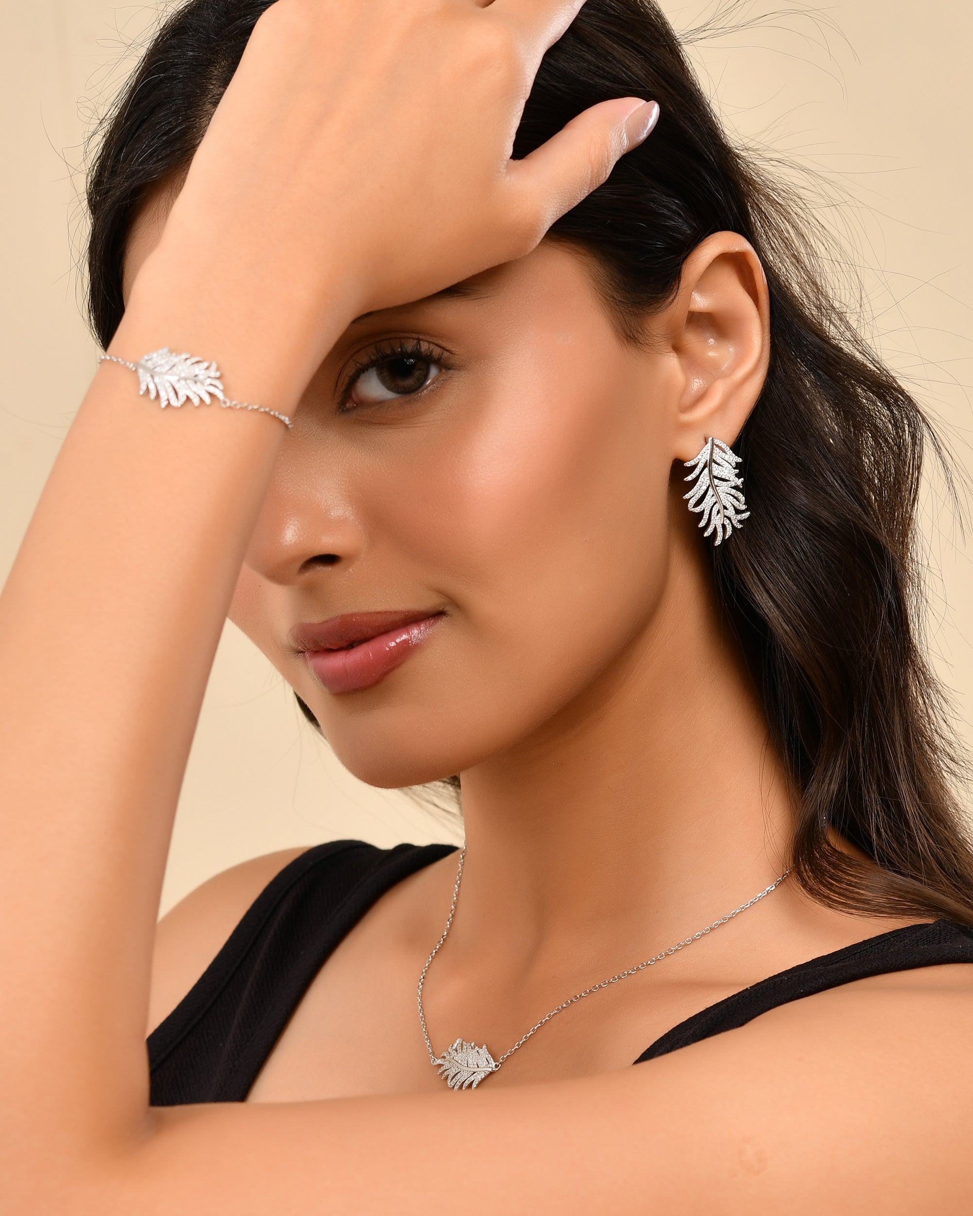 Leaf CZ Necklace Bracelet Earring Set 925 Sterling Silver