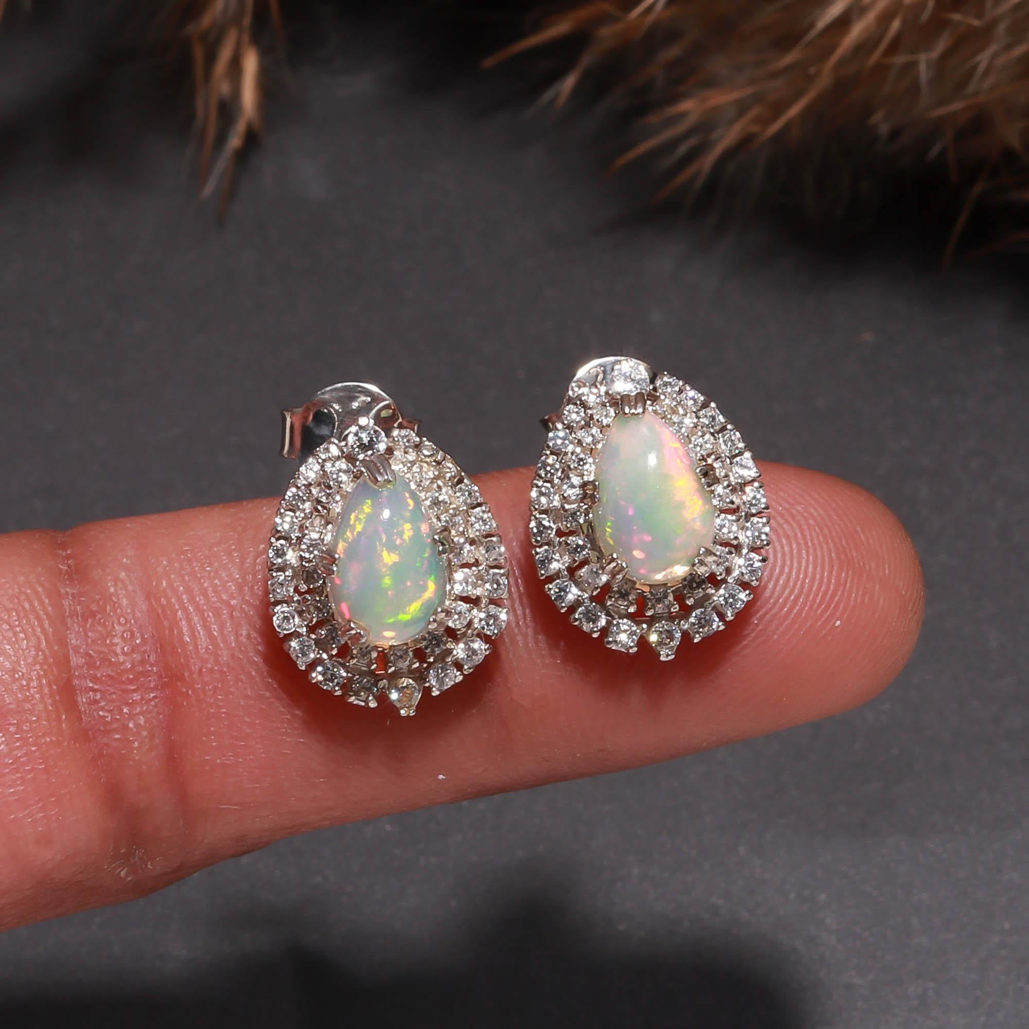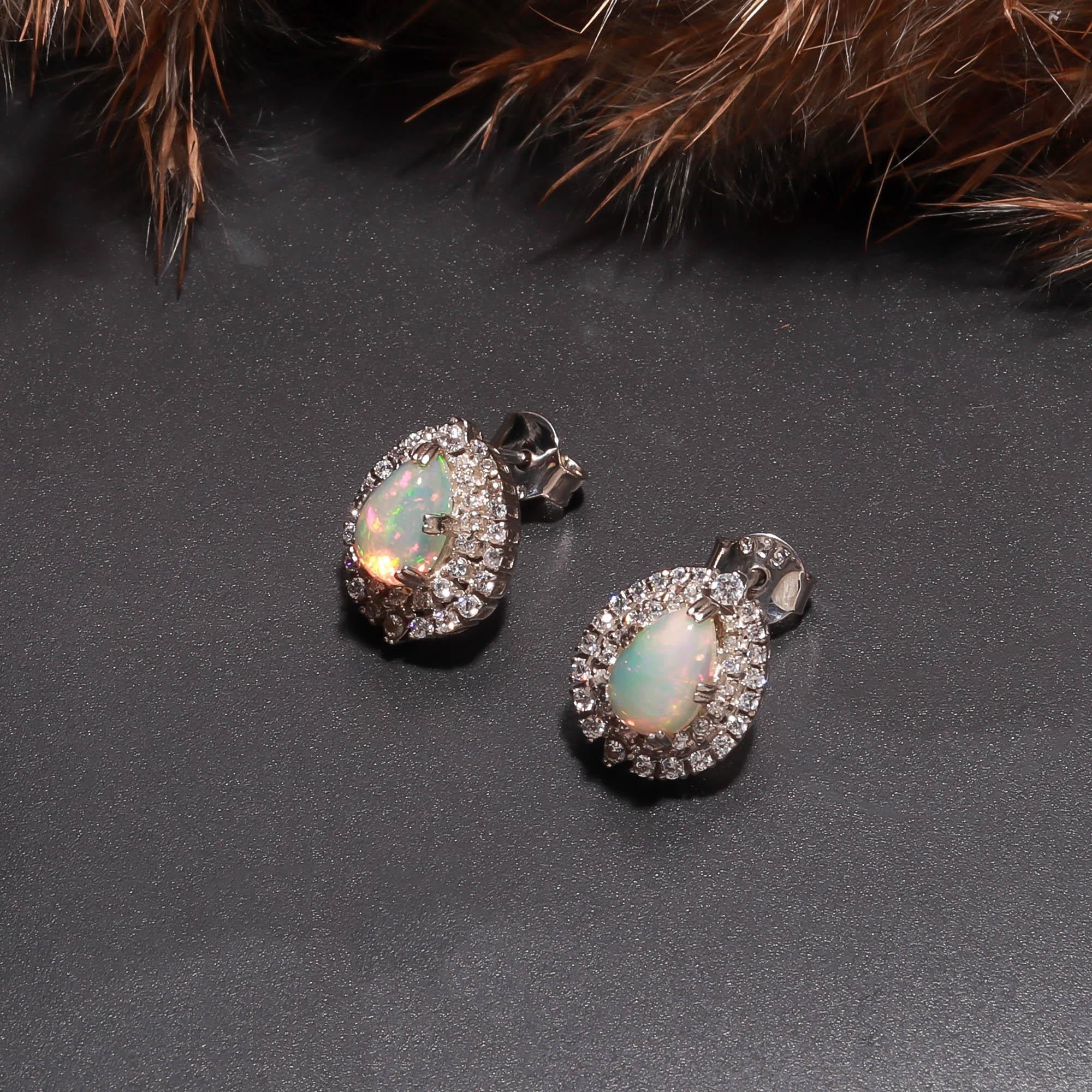 π Teardrop Halo Design β Sparkling accent stones surround the opal, enhancing brilliance and creating a refined glow
