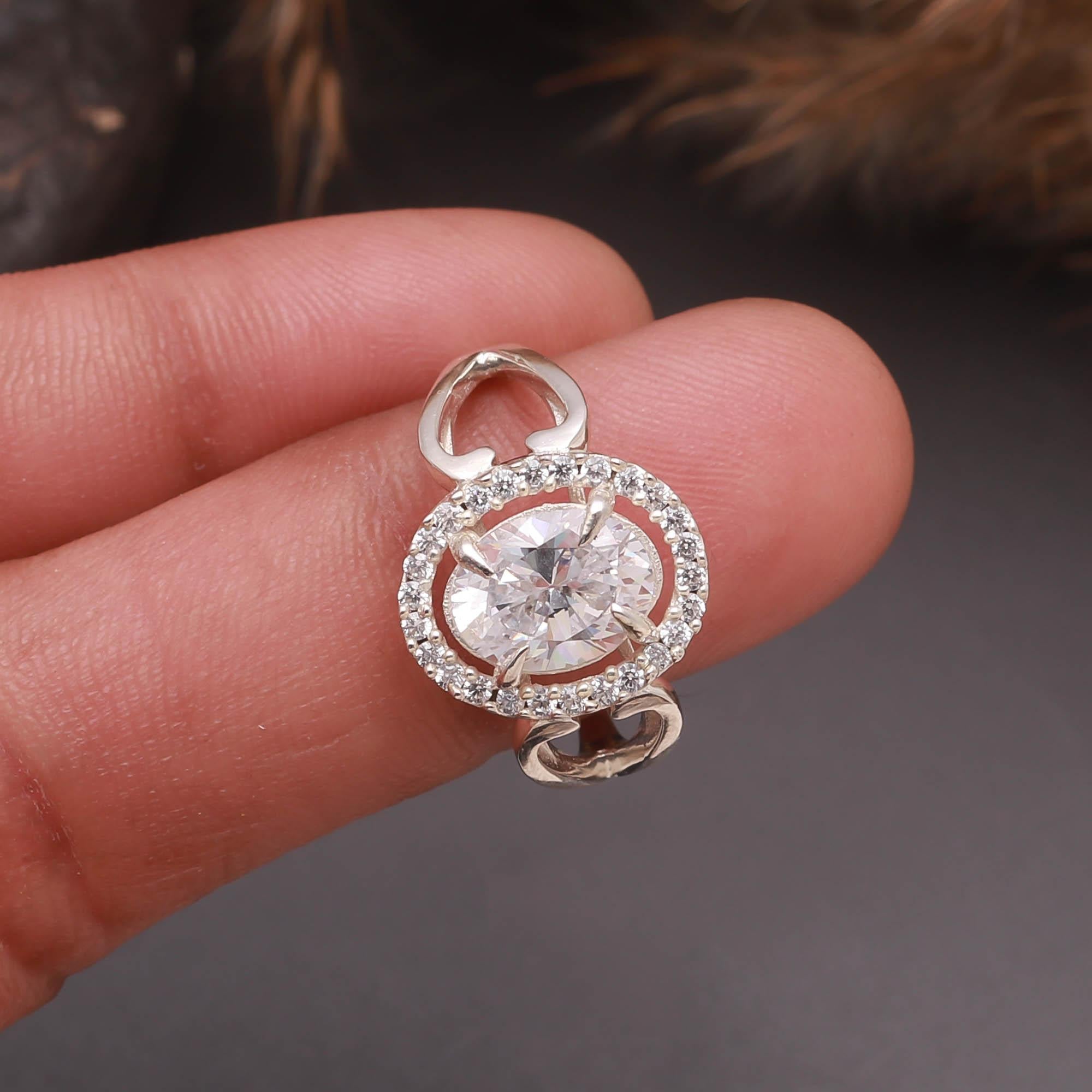 Halo Moissanite 925 Sterling Silver Pendant Connector Ring