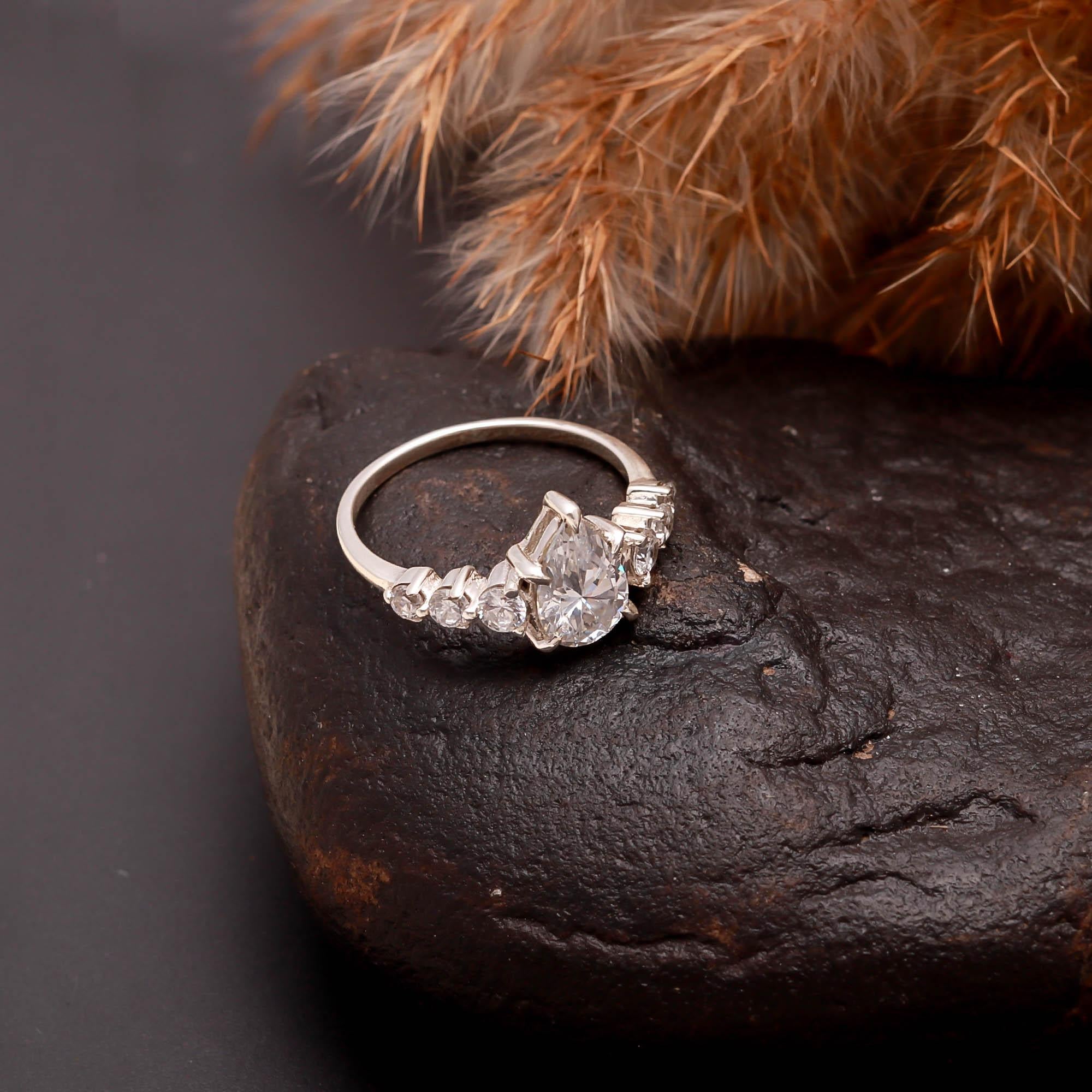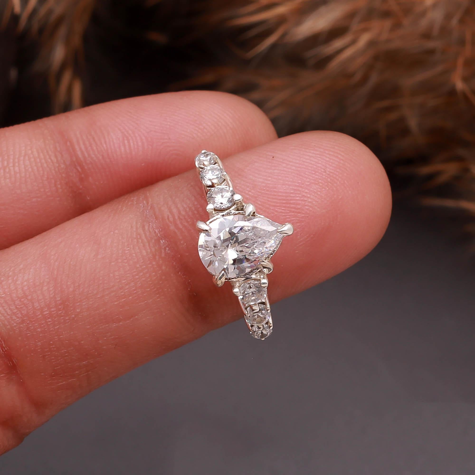 Side Stones Pear-Shaped Moissanite 925 Sterling Silver Engagement Ring